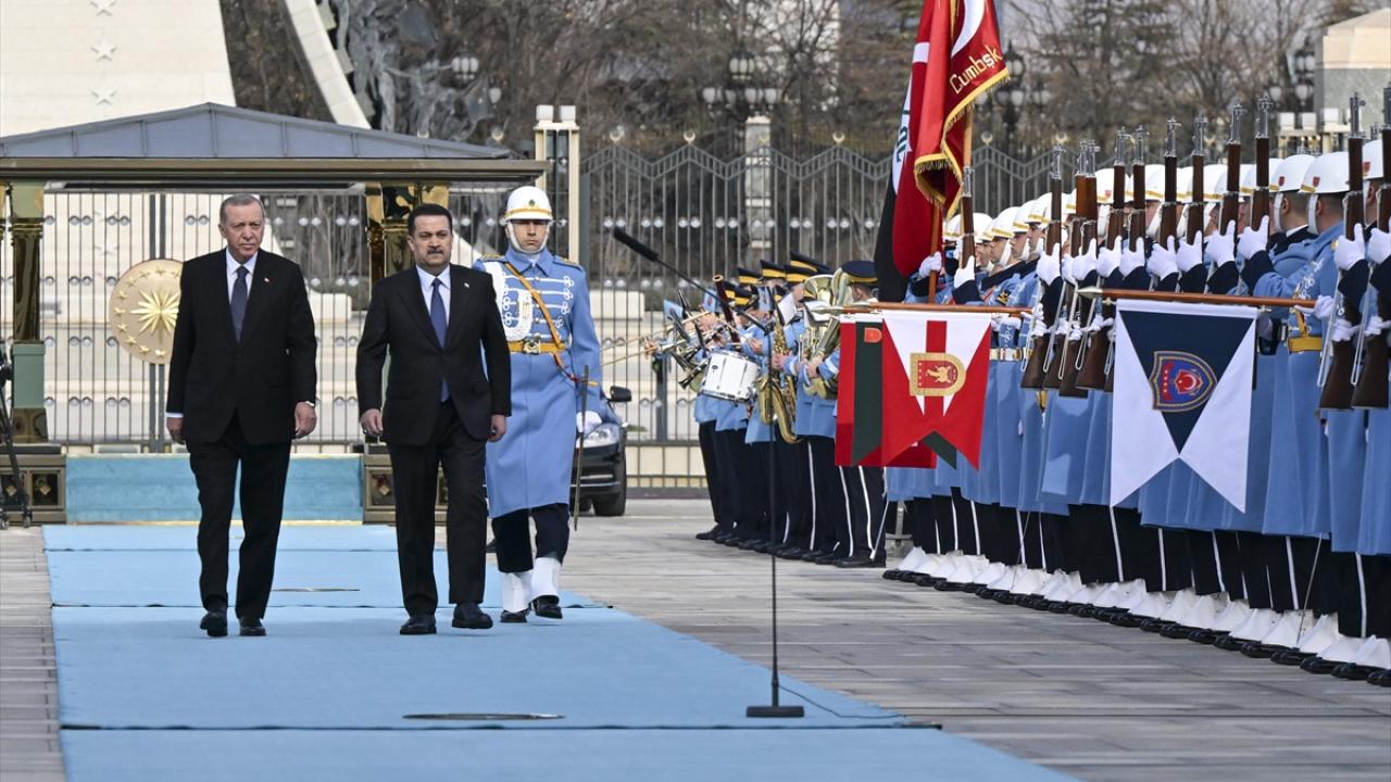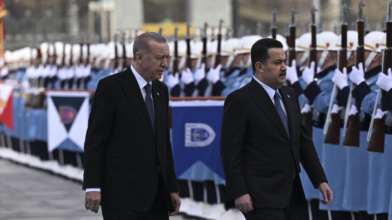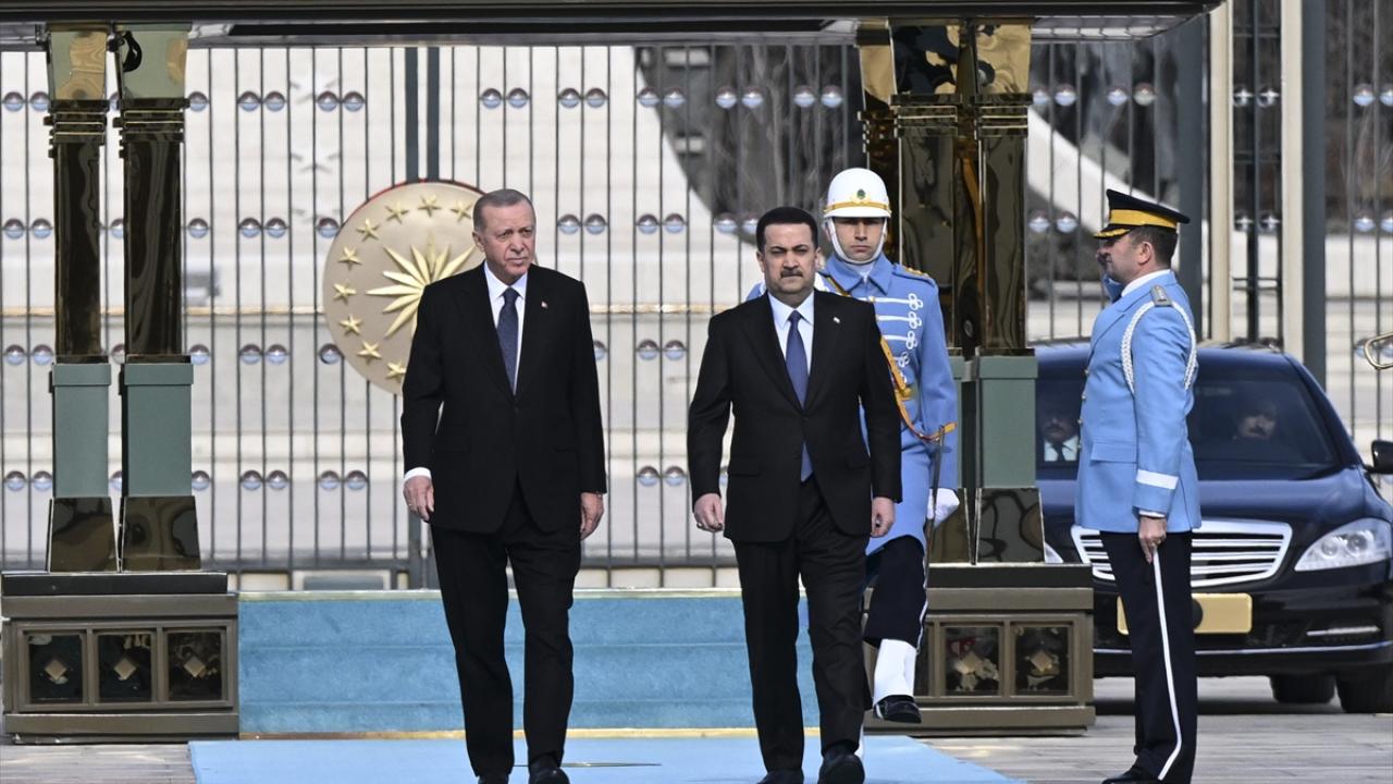 Cumhurbaşkanı Erdoğan, Irak Başbakanı El Sudani ile görüştükten sonra iki lider heyetler arası görüşmeye geçecek.