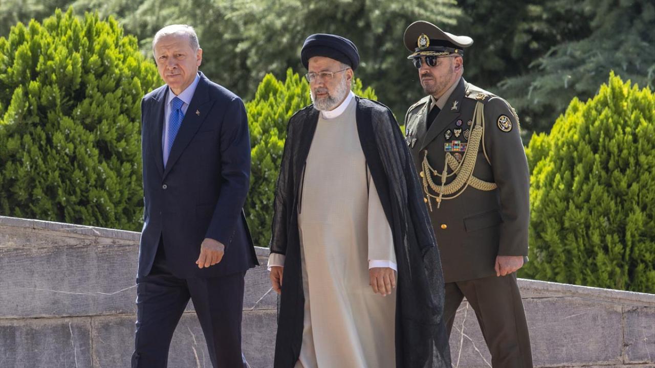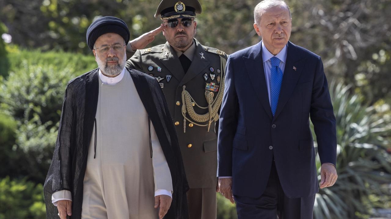 Tören kıtasını selamlayan Erdoğan ve Reisi, daha sonra tokalaşarak gazetecilere poz verdi.