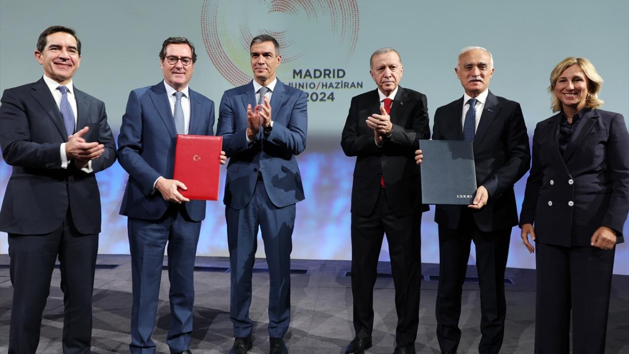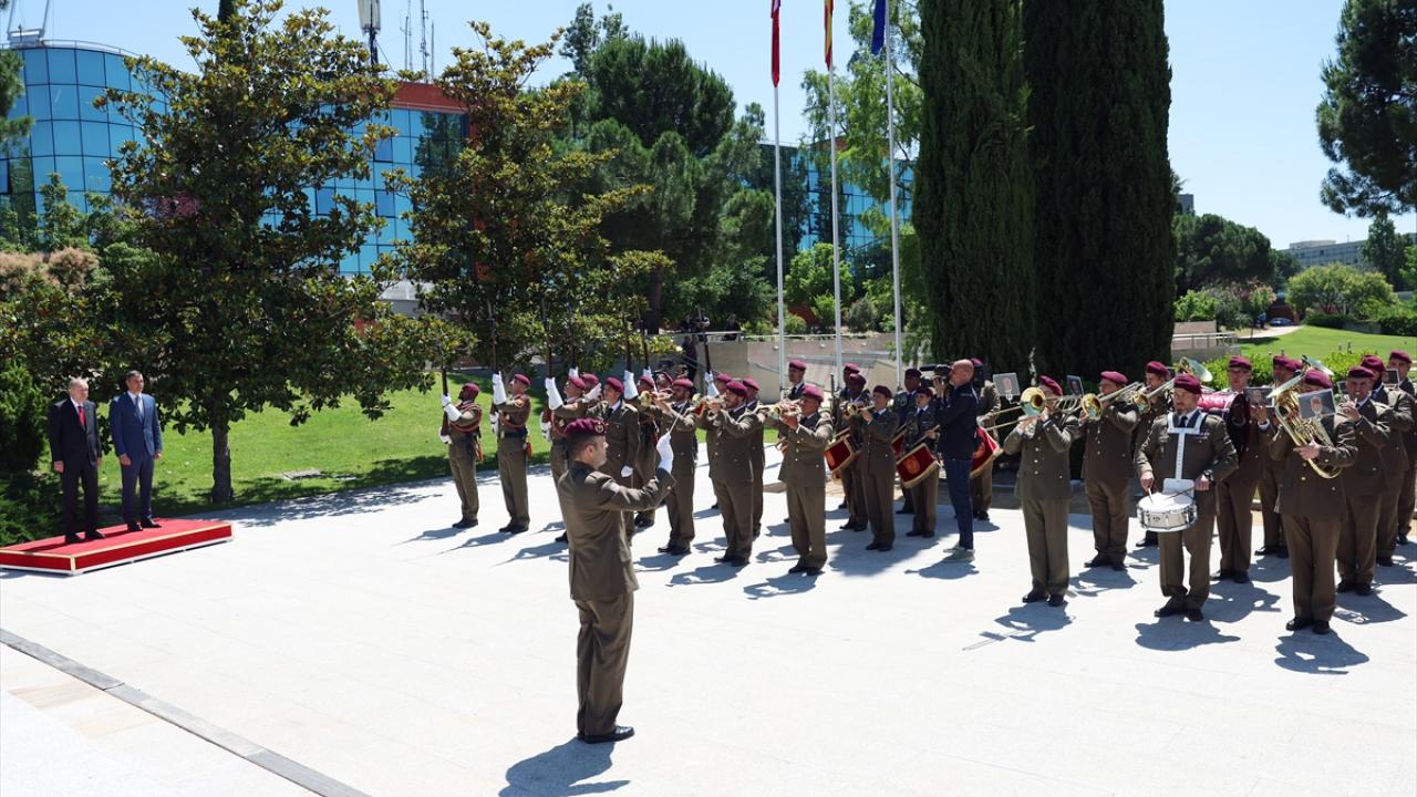 Moncloa Sarayı`ndaki tören, Cumhurbaşkanı Erdoğan ve Sanchez`in yerlerini almasının ardından iki ülke milli marşlarının çalınmasıyla başladı.