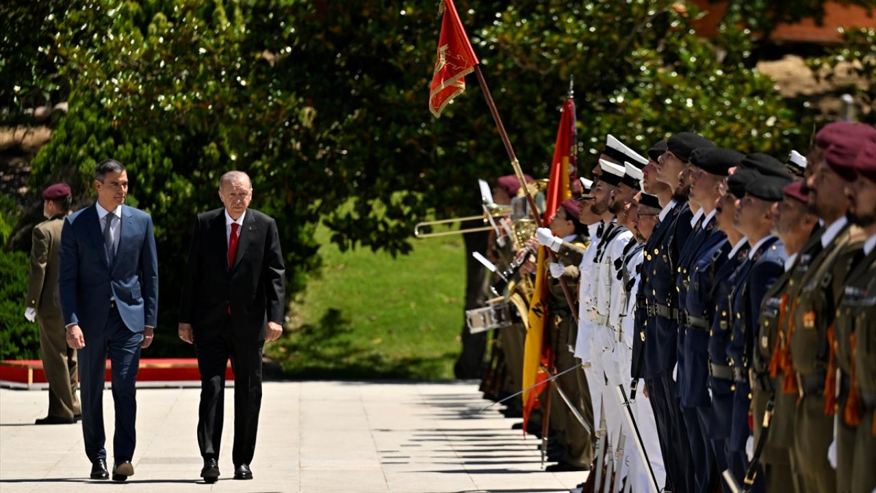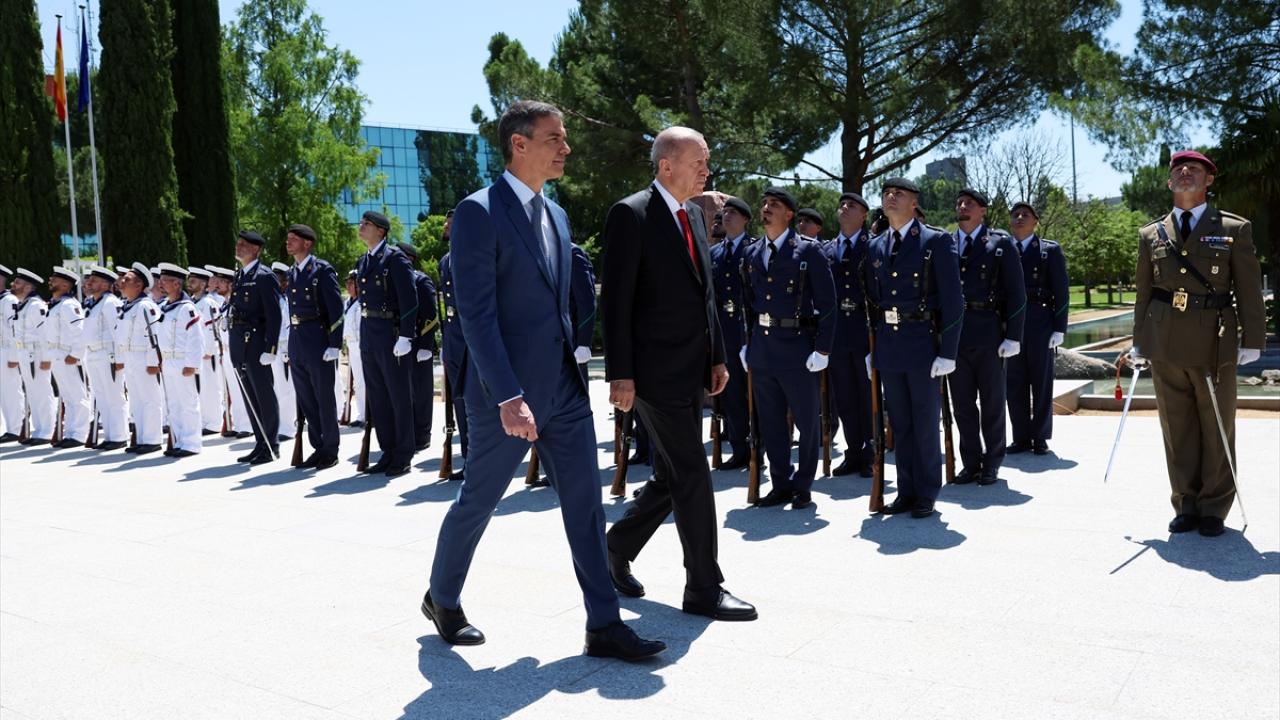 Cumhurbaşkanı Recep Tayyip Erdoğan, Türkiye-İspanya 8. Hükümetler Arası Zirvesi kapsamında bulunduğu İspanya'da, Başbakan Pedro Sanchez tarafından resmi törenle karşılandı.