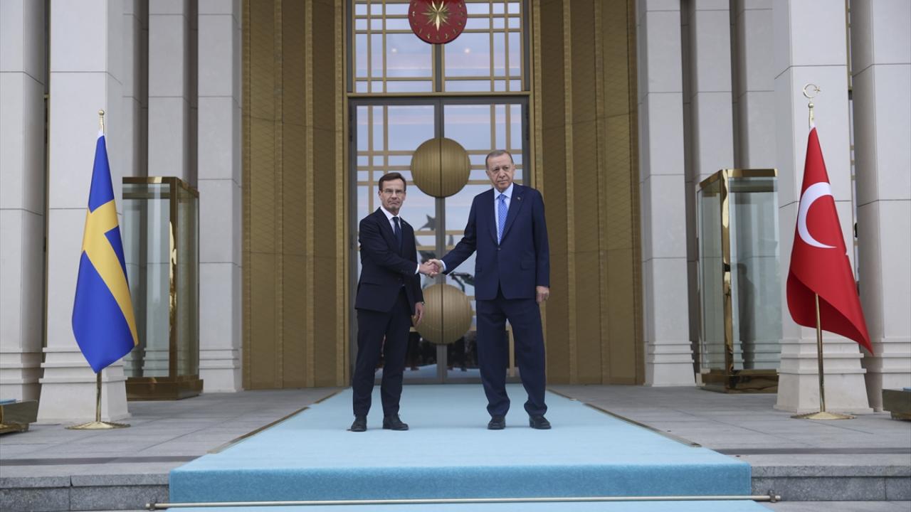 İki ülke heyetlerinin takdimi sonrasında, Cumhurbaşkanı Erdoğan ve Kristersson merdivenlerde gazetecilere poz verdi. Erdoğan ve Kristersson daha sonra baş başa görüşmeye geçti.