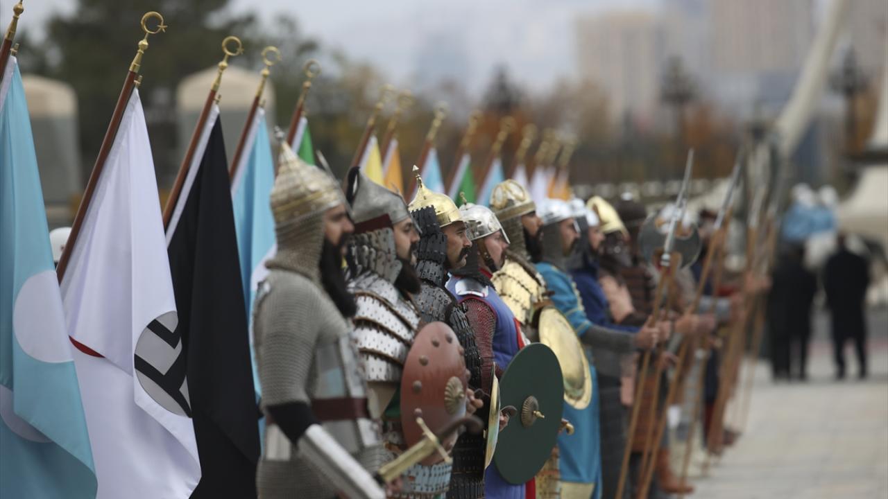 Törende, tarihte kurulan 16 Türk devletini temsil eden bayraklar ve askerler de yer aldı.