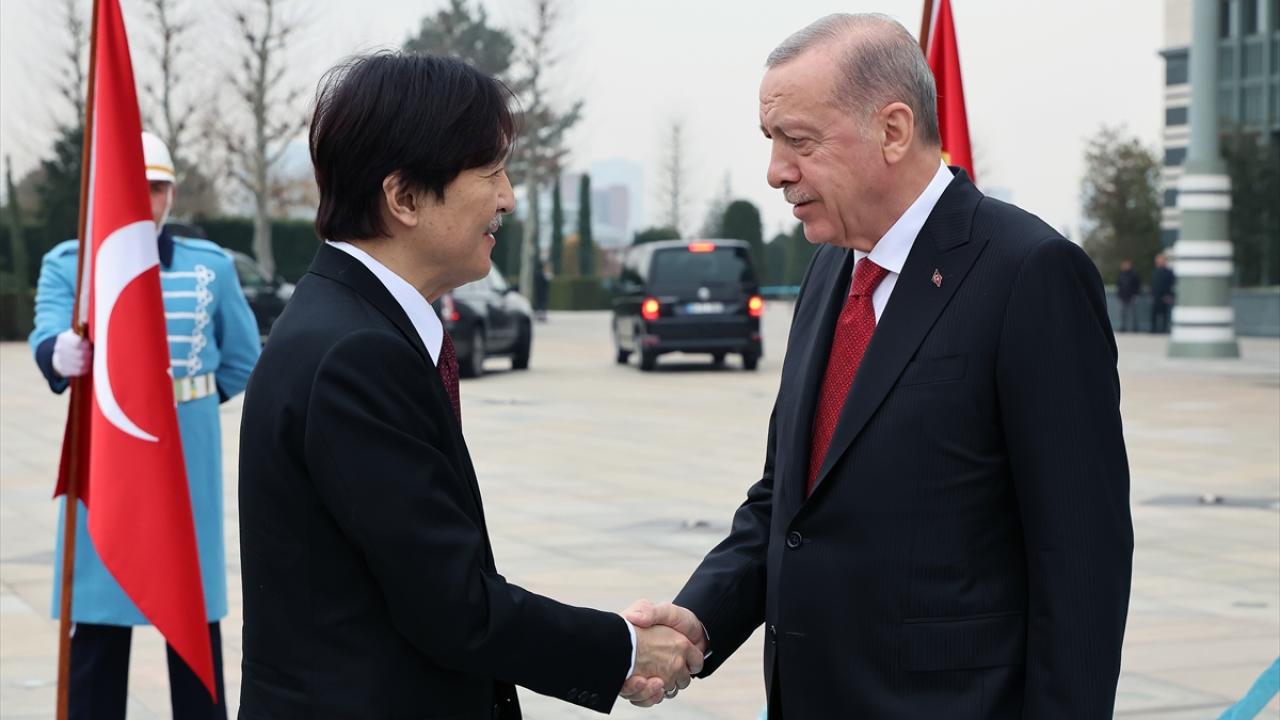 Cumhurbaşkanı Recep Tayyip Erdoğan, Türkiye`ye ziyarette bulunan Japonya Veliaht Prensi Fumihito`yu Cumhurbaşkanlığı Külliyesi`nde resmi törenle karşıladı.