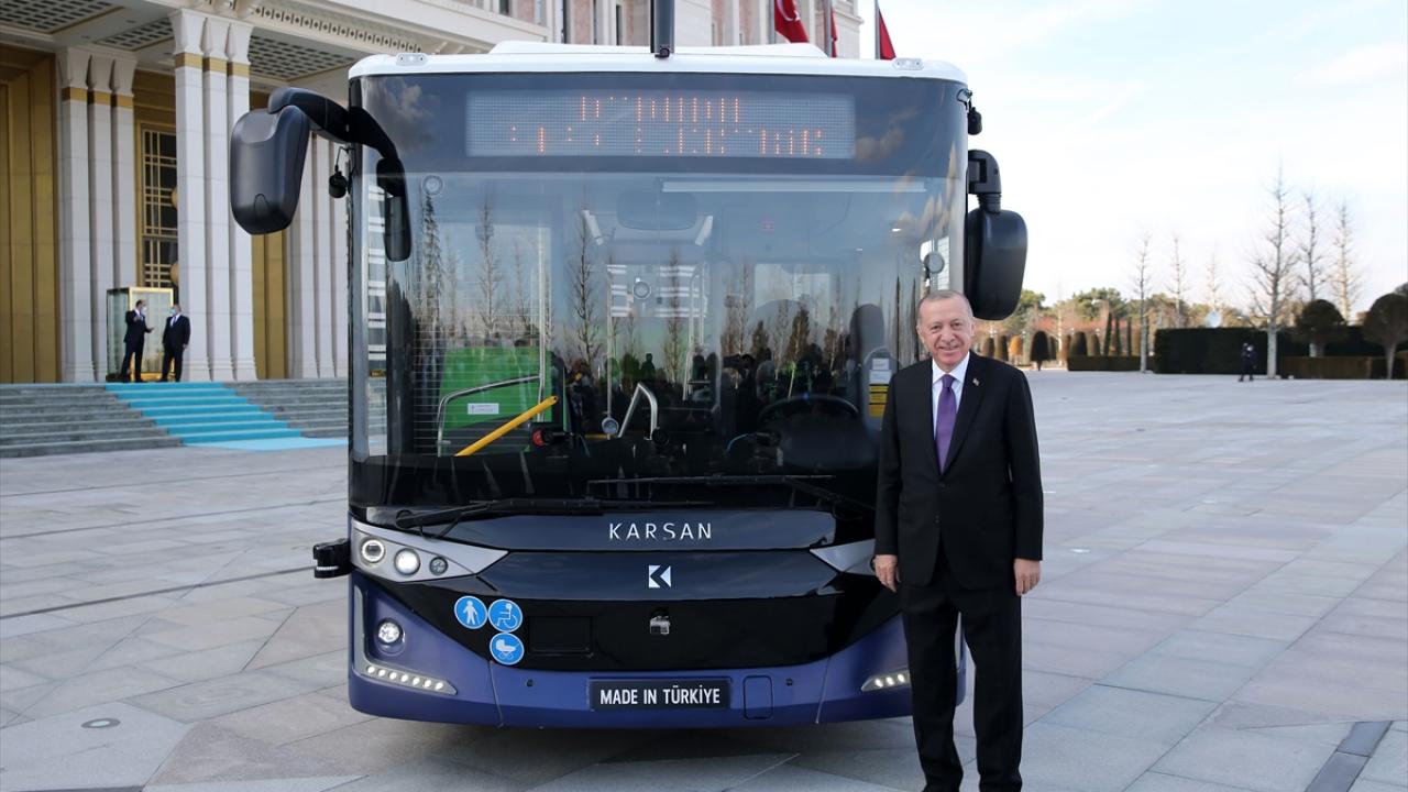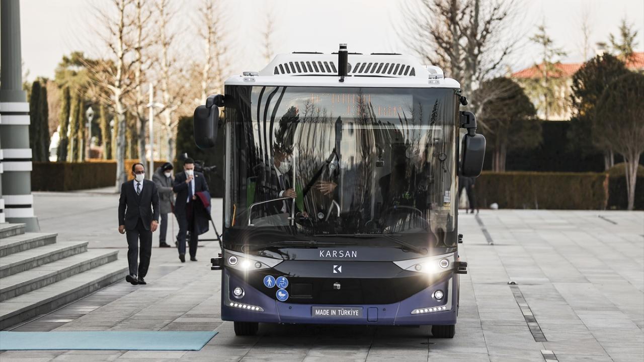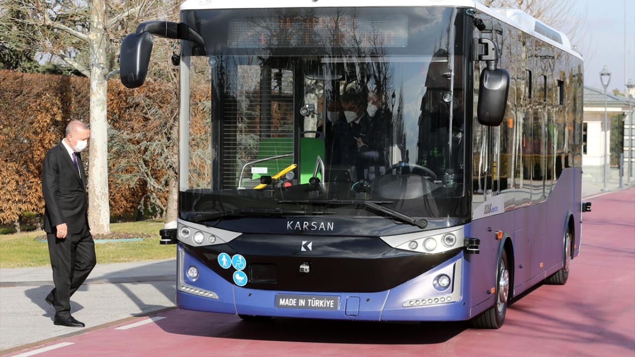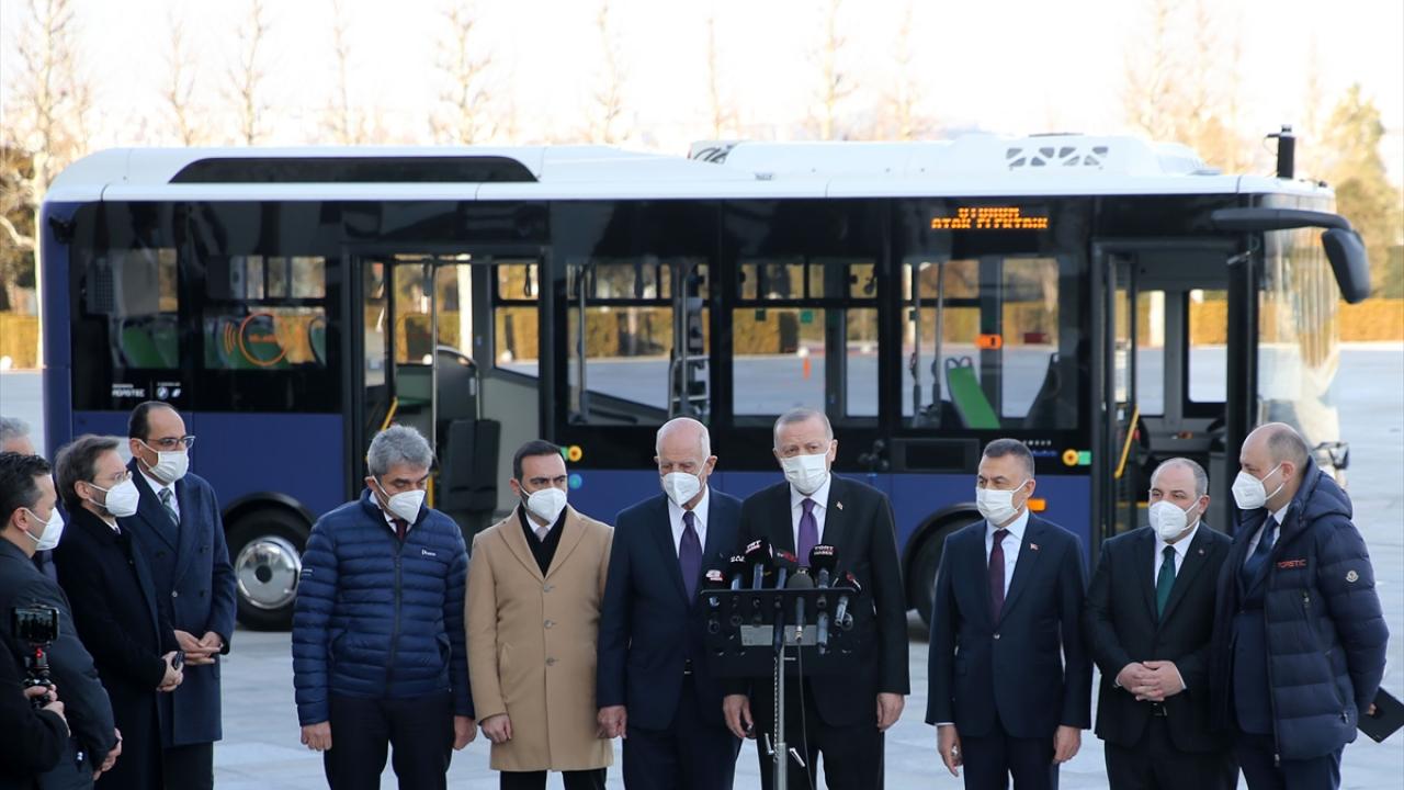 Cumhurbaşkanı Recep Tayyip Erdoğan, Kabine toplantısına, Türk mühendisleri tarafından geliştirilen dünyanın ilk seri üretim 4. seviye sürücüsüz elektrikli otobüsü Atak Electric ile gitti.