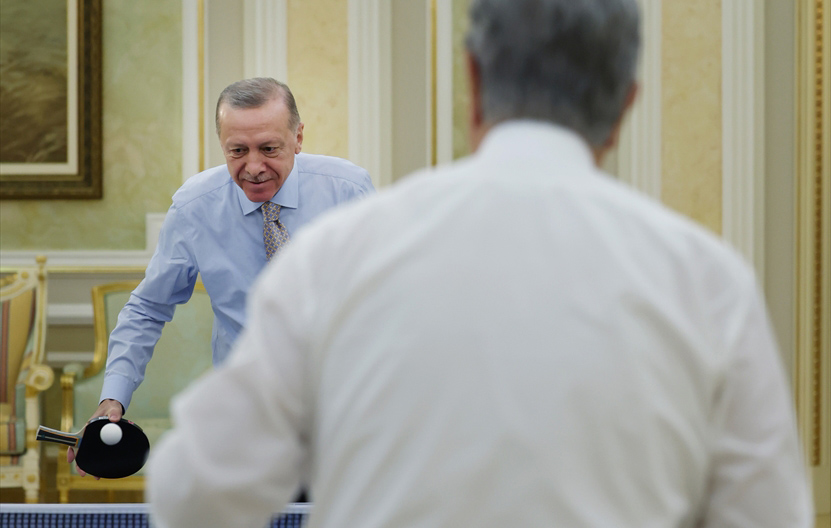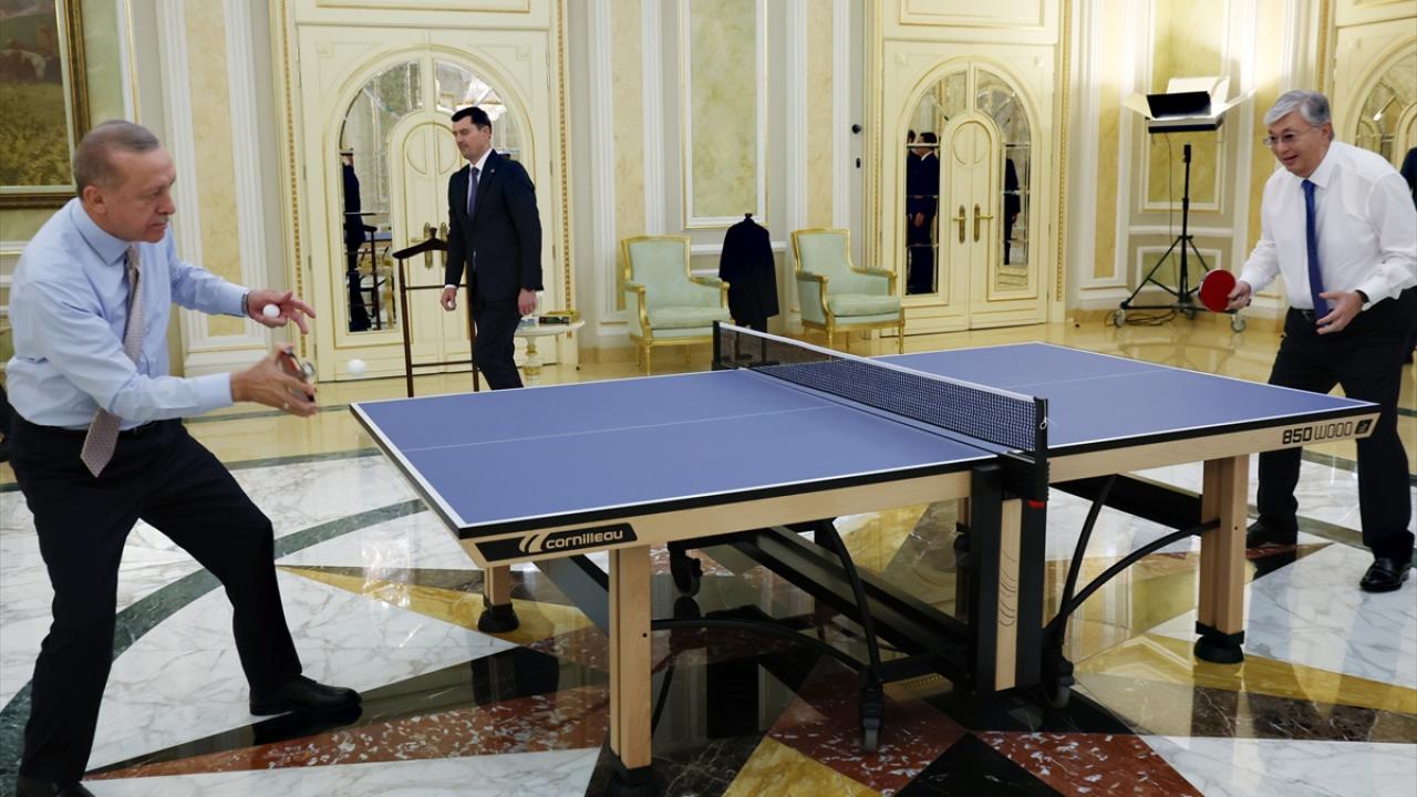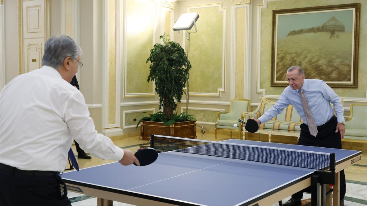 Cumhurbaşkanı Recep Tayyip Erdoğan, ziyarette bulunduğu Astana'da, Kazakistan Cumhurbaşkanı Kasım Cömert Tokayev ile görüştü. Görüşmeler sonrası Cumhurbaşkanı Erdoğan, Kazakistan Cumhurbaşkanı Tokayev ile masa tenisi oynadı.