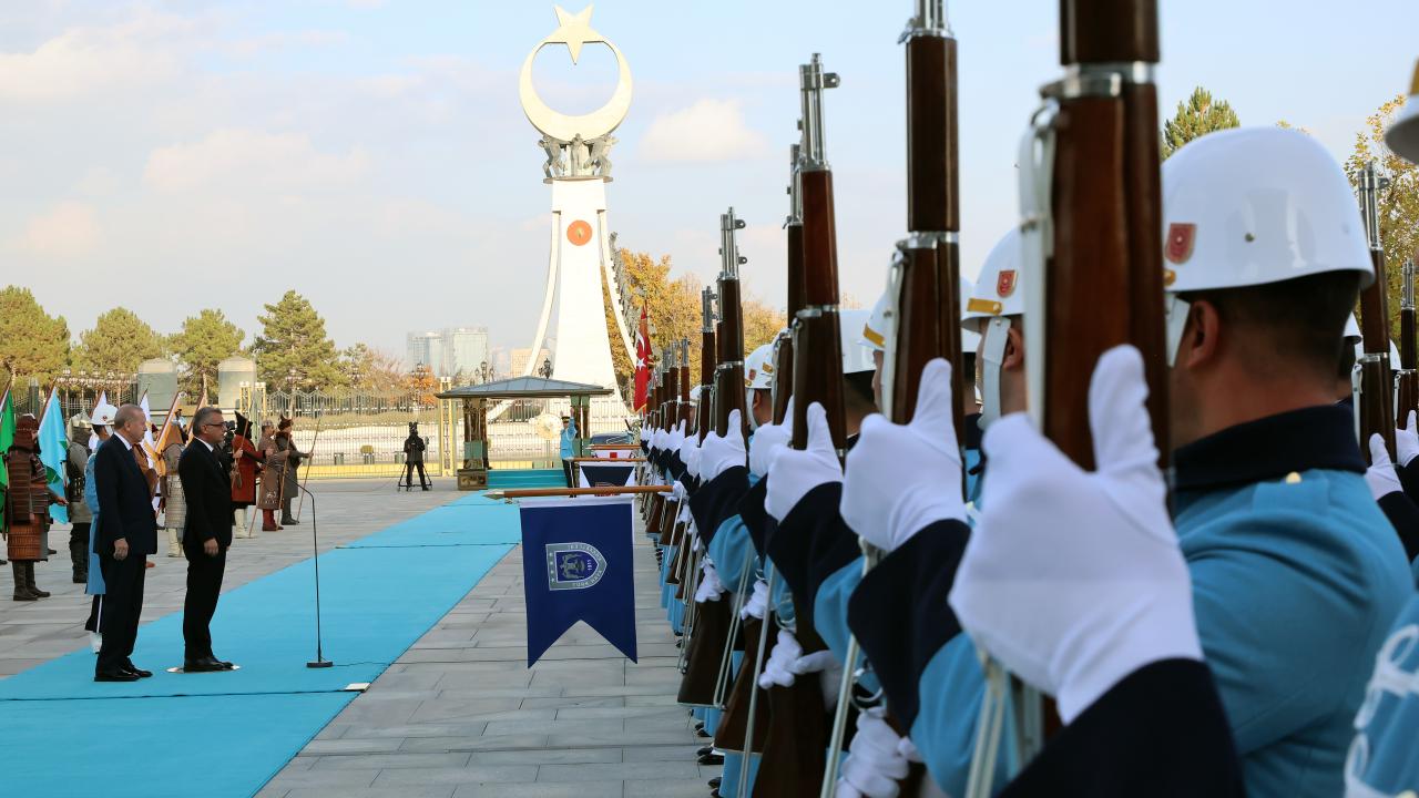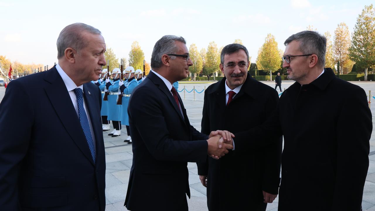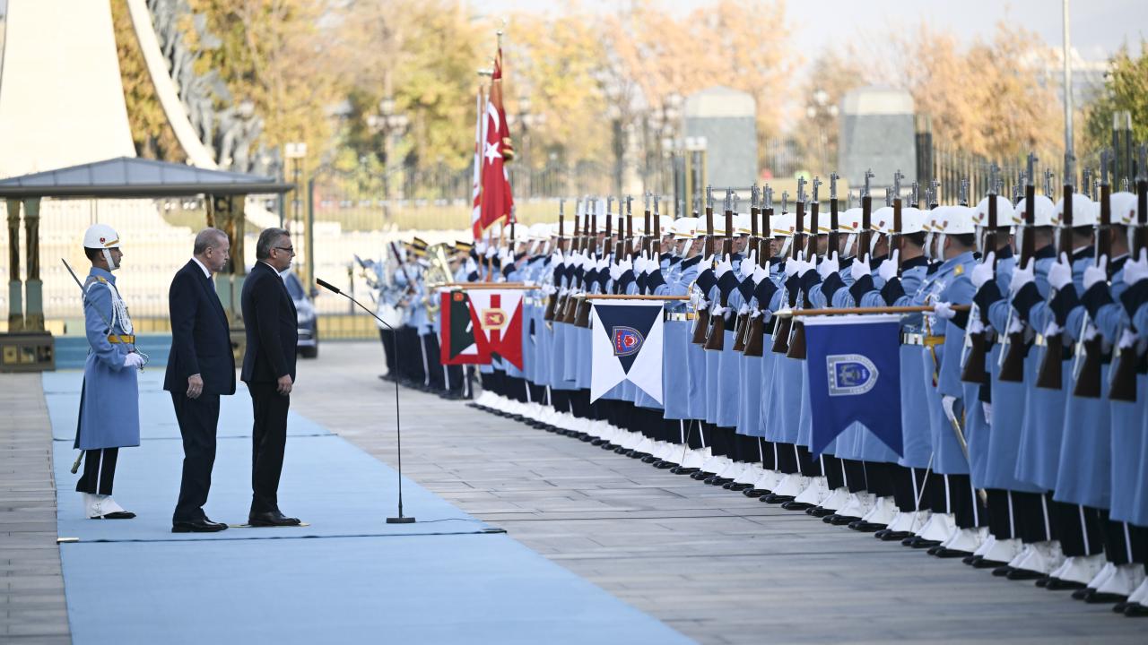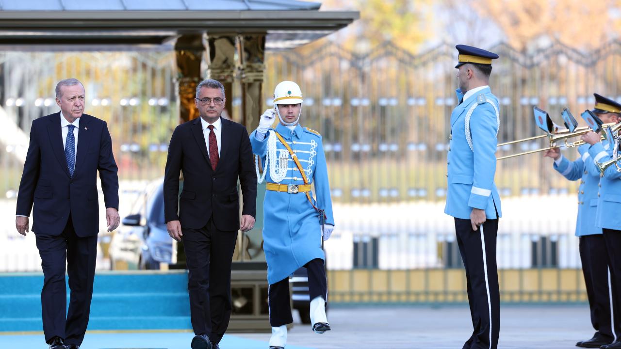 Cumhurbaşkanı Recep Tayyip Erdoğan, Kuzey Kıbrıs Türk Cumhuriyeti (KKTC) Cumhurbaşkanı Tufan Erhürman'ı Cumhurbaşkanlığı Külliyesi'nde resmi törenle karşıladı.