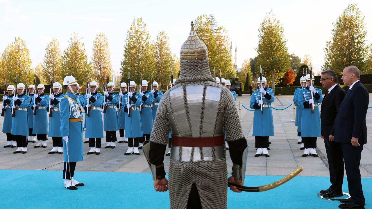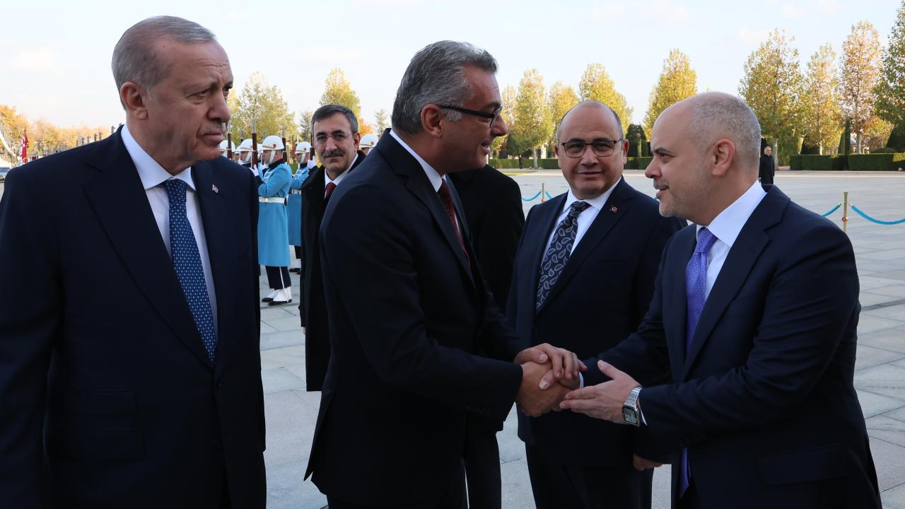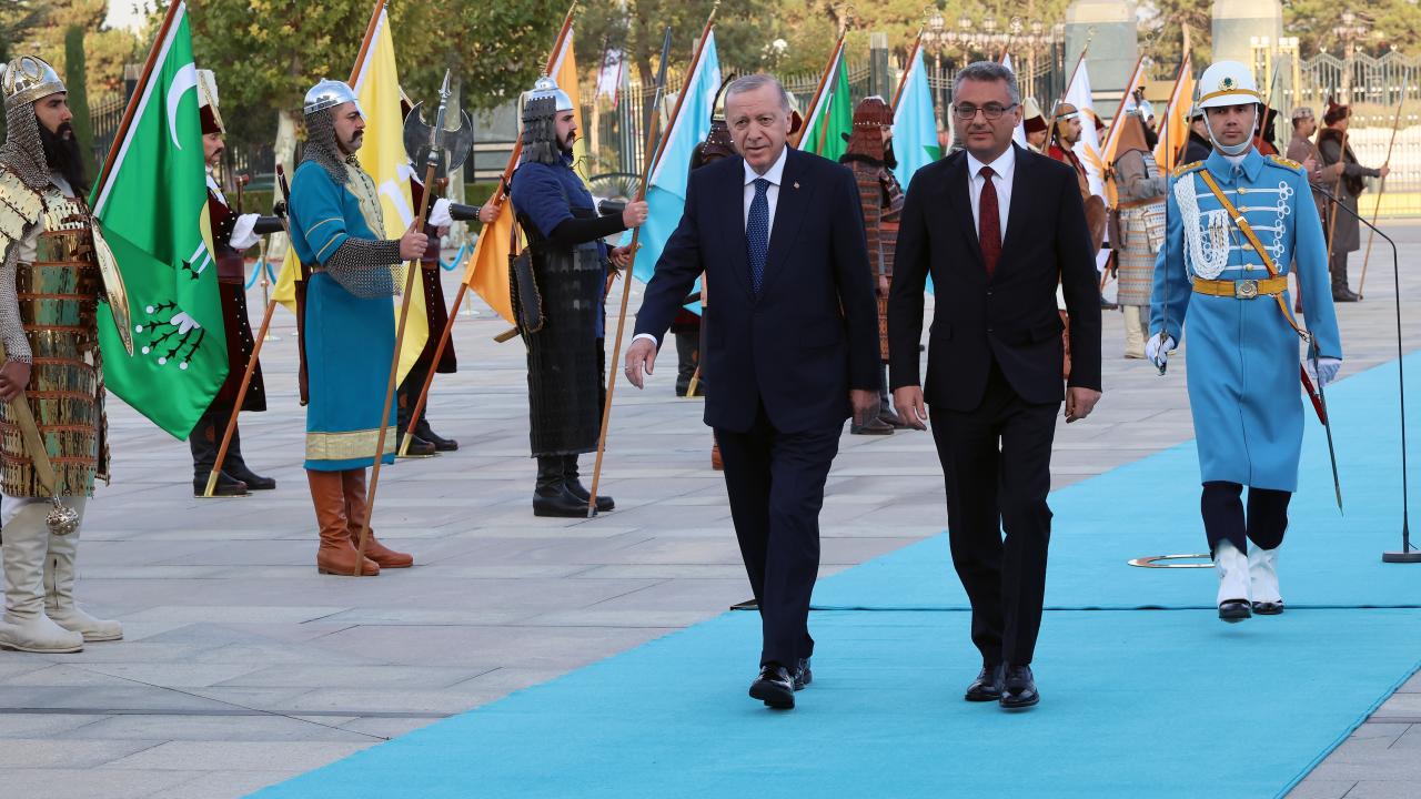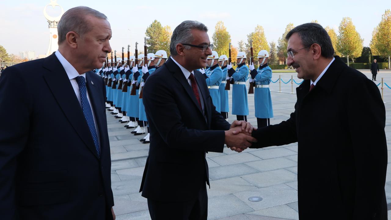 Cumhurbaşkanı Recep Tayyip Erdoğan, Kuzey Kıbrıs Türk Cumhuriyeti (KKTC) Cumhurbaşkanı Tufan Erhürman'ı Cumhurbaşkanlığı Külliyesi'nde resmi törenle karşıladı.