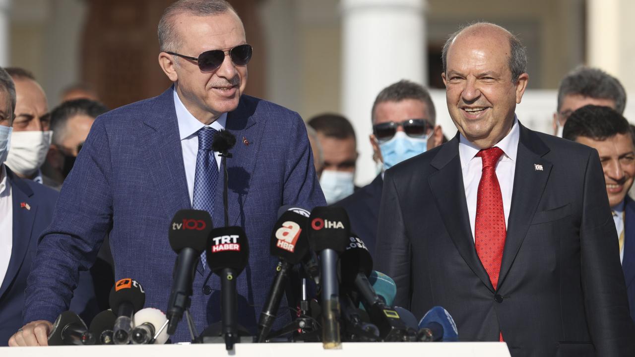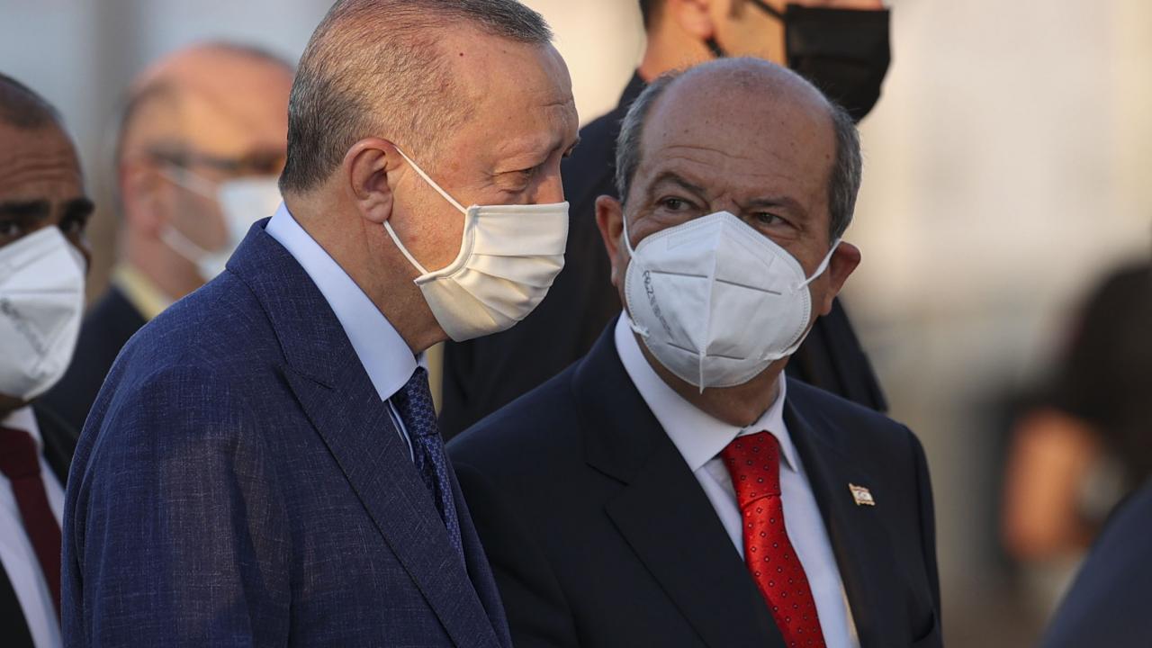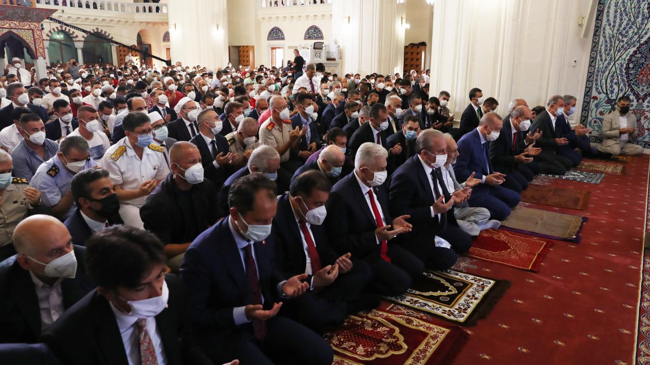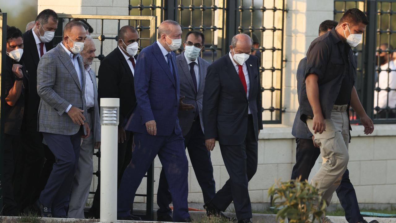 Türkiye Cumhurbaşkanı Recep Tayyip Erdoğan, KKTC Cumhurbaşkanı Ersin Tatar ile birlikte Kurban Bayramı namazını kılmak üzere Lefkoşa`daki Hala Sultan Camii`ne geldi.