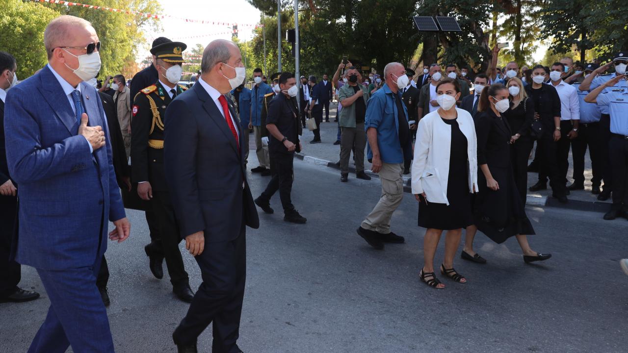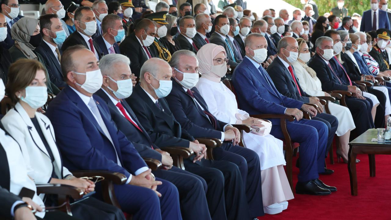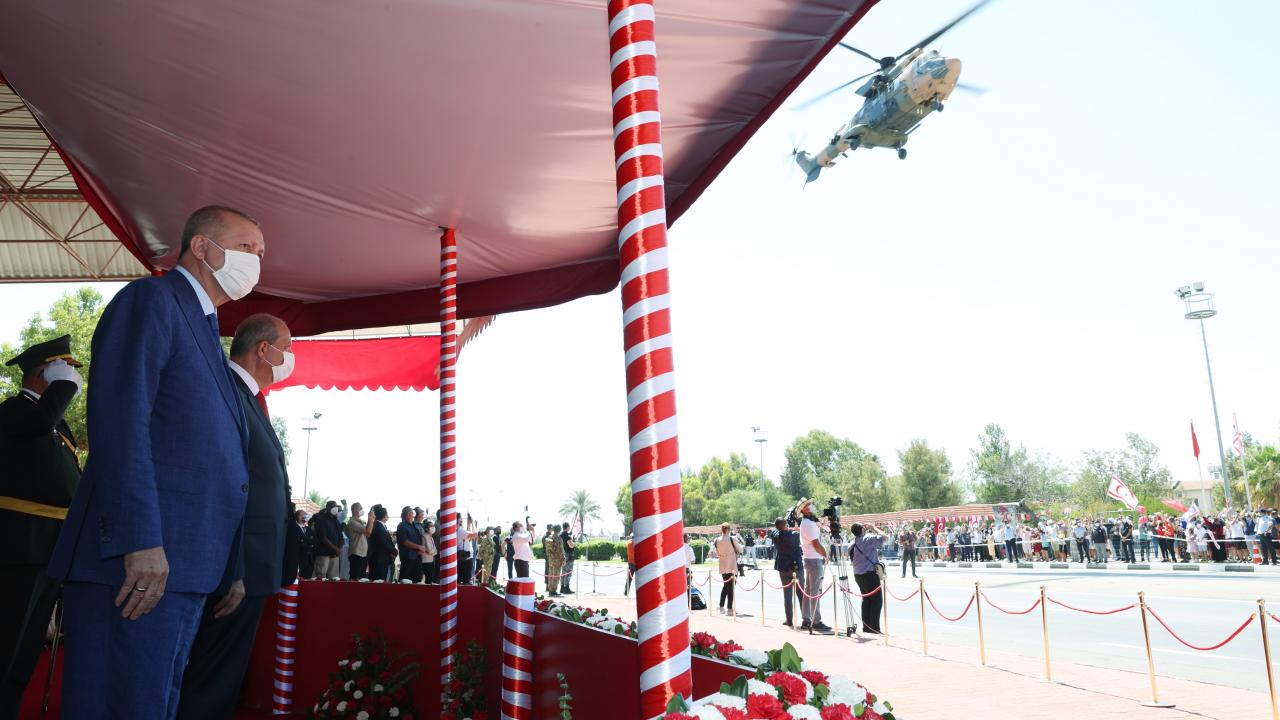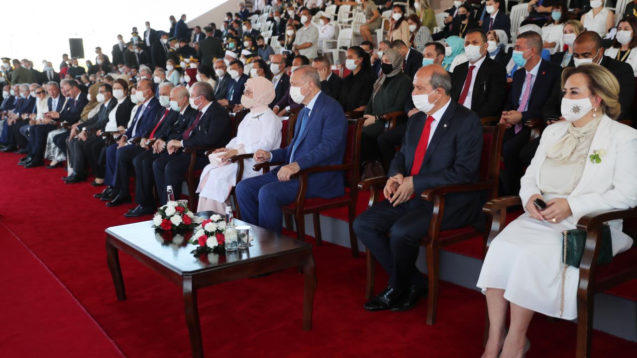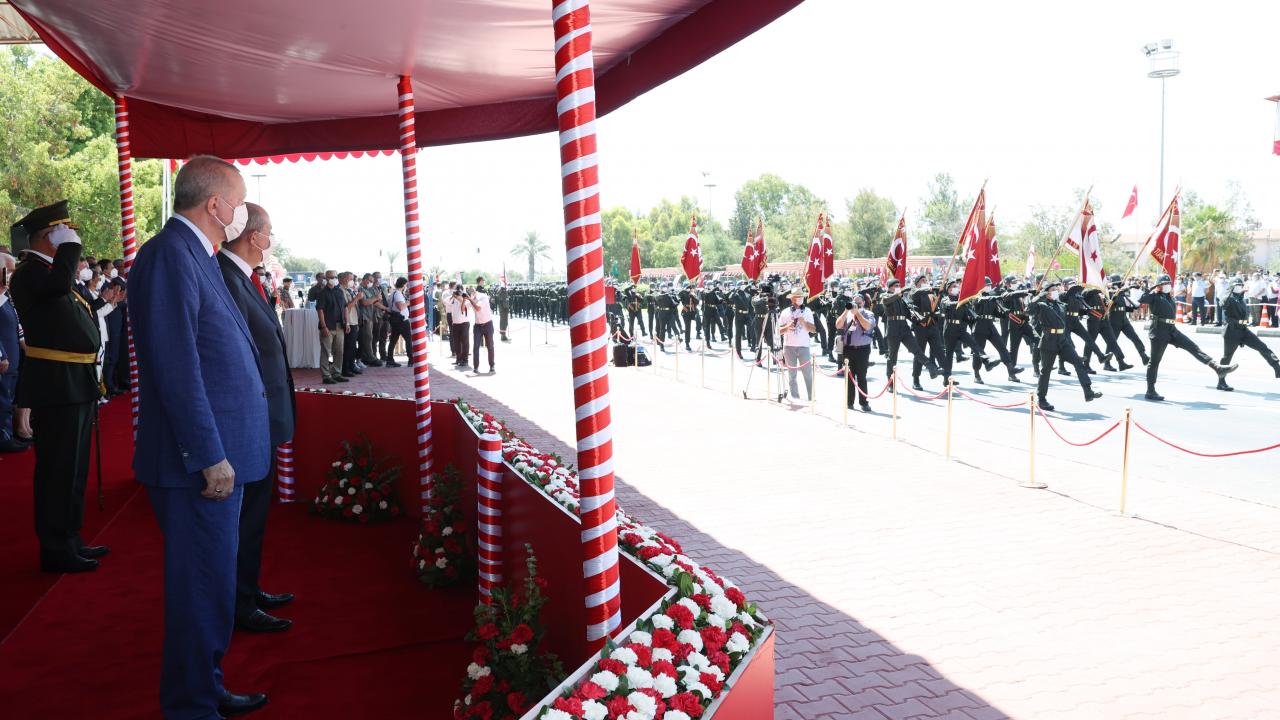 Türkiye Cumhurbaşkanı Recep Tayyip Erdoğan, KKTC`de Kıbrıs Barış Harekatı`nın 47`nci yıl dönümü dolayısıyla düzenlenen Barış ve Özgürlük Bayramı kutlamalarına katıldı.