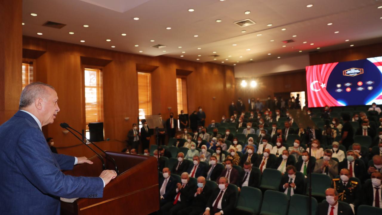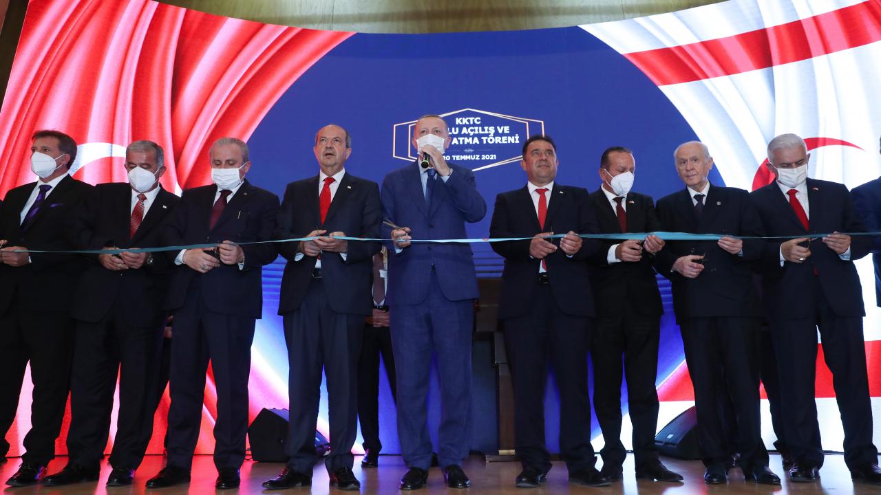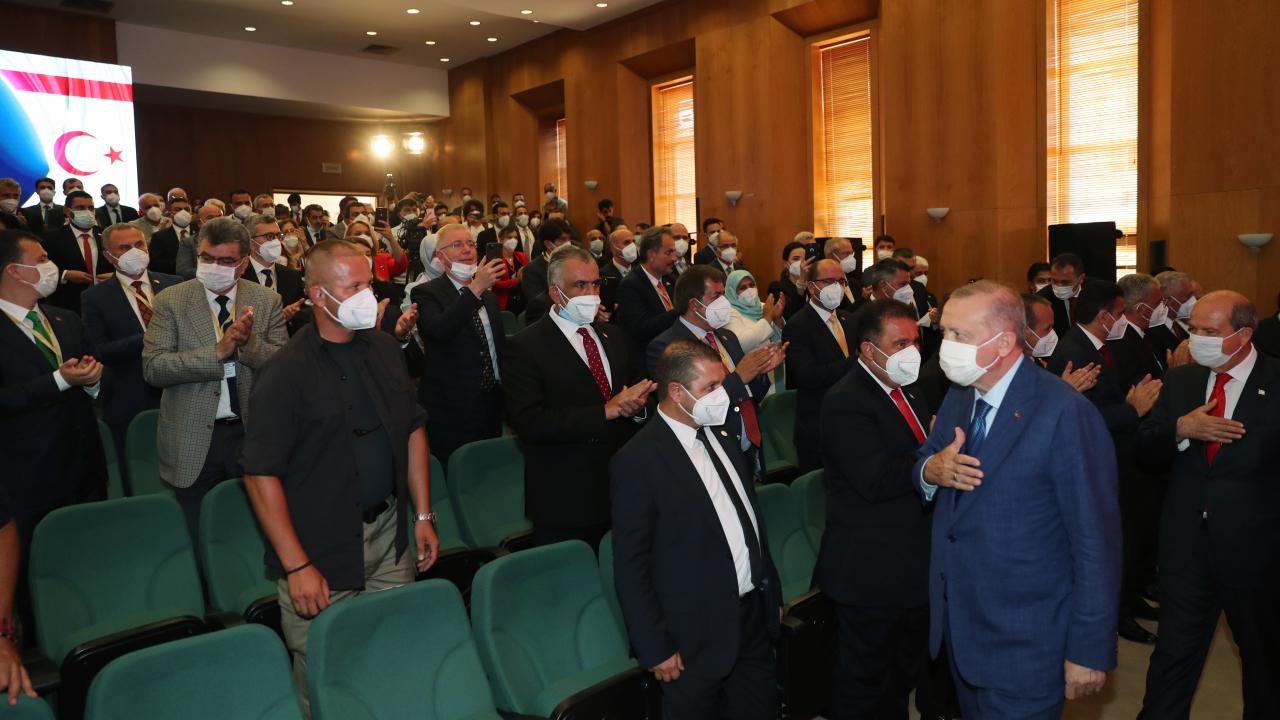 Buradaki konuşmasına kendisini dinleyenleri selamlayarak başlayan Erdoğan, Kıbrıs Türk halkının barış ve özgürlüğe kavuşmasını sağlayan Barış Harekatı`nın 47. yıl dönümünde KKTC`de bulunmaktan büyük bir gurur ve memnuniyet duyduğunu dile getirdi.