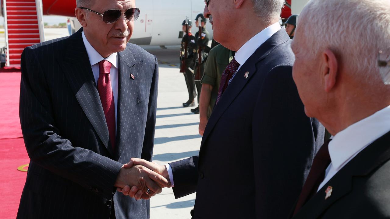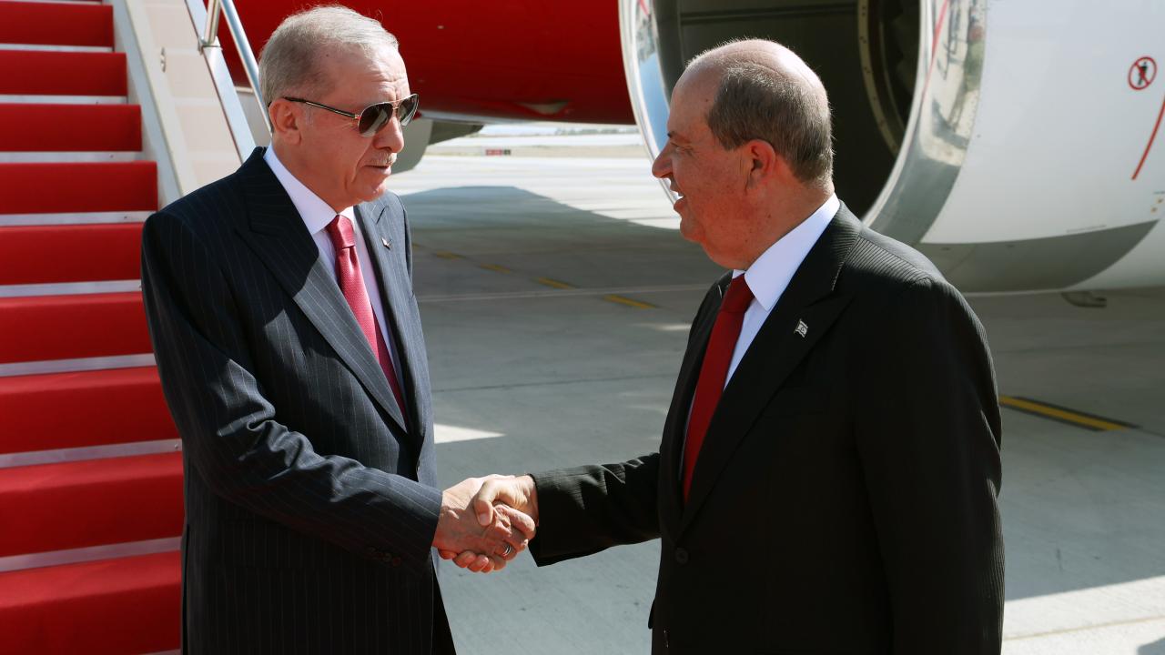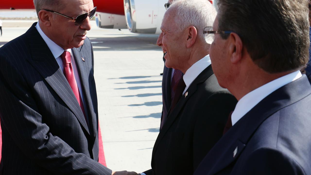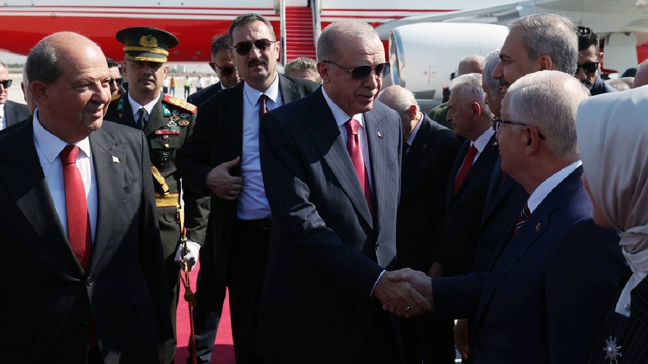 Erdoğan, Ercan Havalimanı`nda, KKTC Cumhurbaşkanı Ersin Tatar tarafından resmi törenle karşılandı. Karşılamada, KKTC Cumhuriyet Meclisi Başkanı Zorlu Töre, KKTC Başbakanı Ünal Üstel ve Türkiye`nin Lefkoşa Büyükelçisi Metin Feyzioğlu da yer aldı.