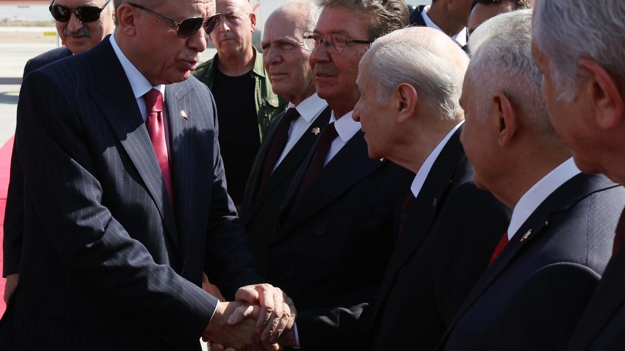 Erdoğan ile DSP Genel Başkanı Önder Aksakal, BBP Genel Başkanı Mustafa Destici, HÜDA PAR Genel Sekreteri Şehzade Demir, Enerji ve Tabii Kaynaklar Bakanı Alparslan Bayraktar, Sağlık Bakanı Kemal Memişoğlu ve Ulaştırma ve Altyapı Bakanı Abdulkadir Uraloğlu da KKTC`ye gitti.