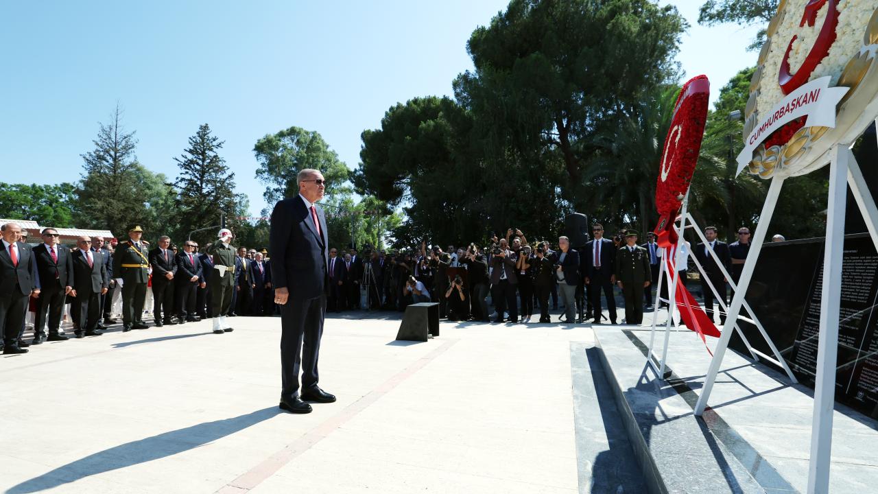 Saygı duruşunda bulunulması ve İstiklal Marşı’nın okunmasının ardından Cumhurbaşkanı Erdoğan, anıta çelenk bıraktı.