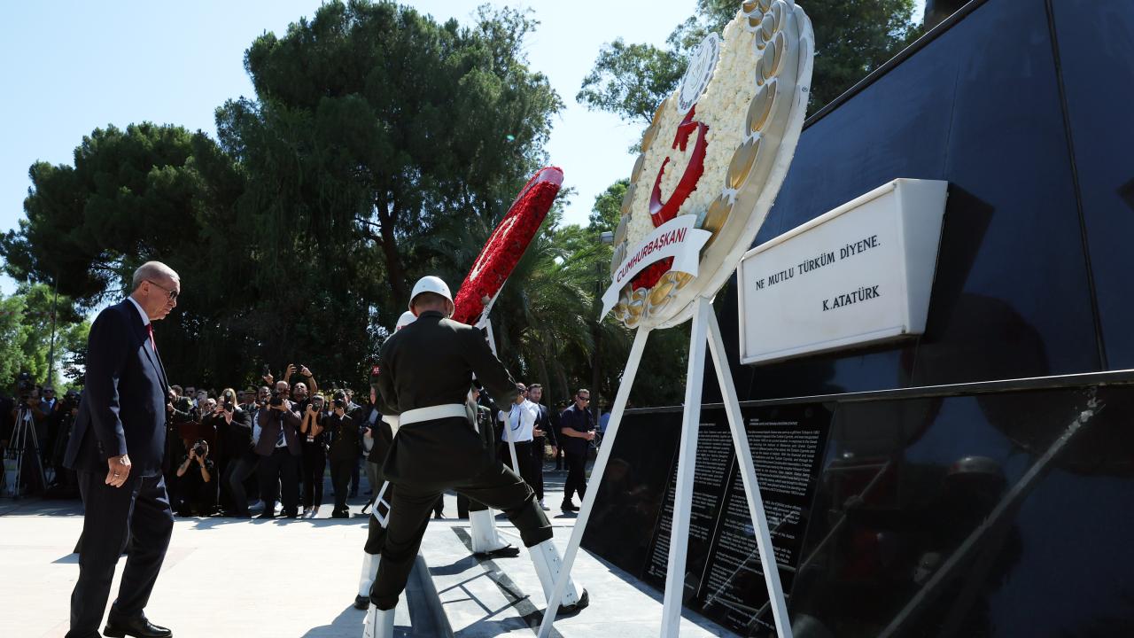 Cumhurbaşkanı Erdoğan, KKTC Cumhurbaşkanı Ersin Tatar`la Atatürk Anıtı`nı ziyaret etti.