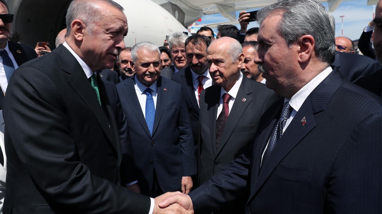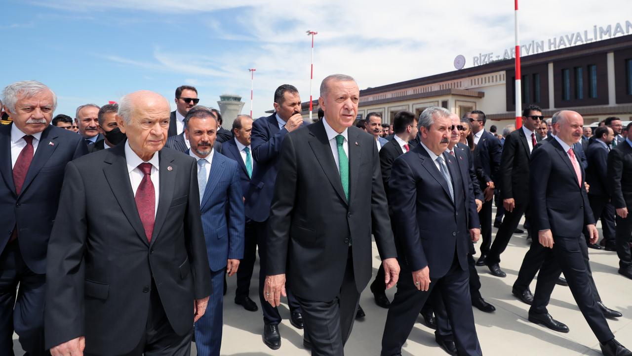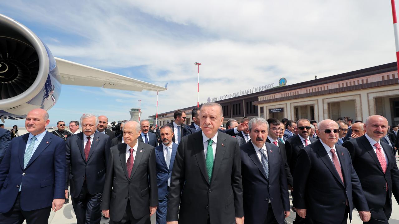 Cumhurbaşkanı Erdoğan`ı, MHP Genel Başkanı Devlet Bahçeli, Ulaştırma ve Altyapı Bakanı Adil Karaismailoğlu, Tarım ve Orman Bakanı Vahit Kirişci, Enerji ve Tabii Kaynaklar Bakanı Fatih Dönmez, BBP Genel Başkanı Mustafa Destici ve AK Parti Genel Başkanvekili Binali Yıldırım karşıladı.