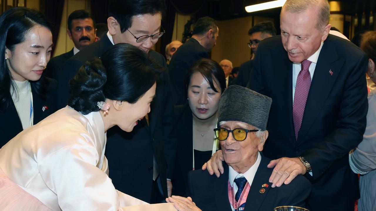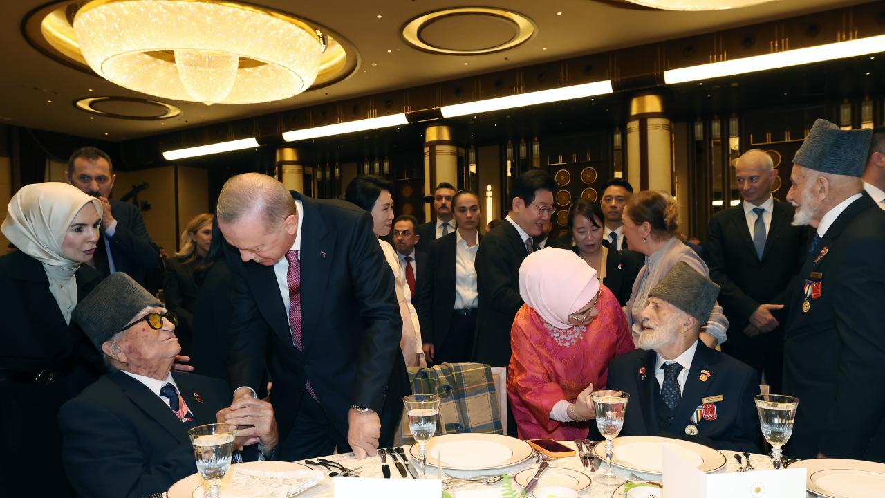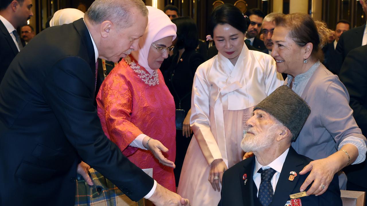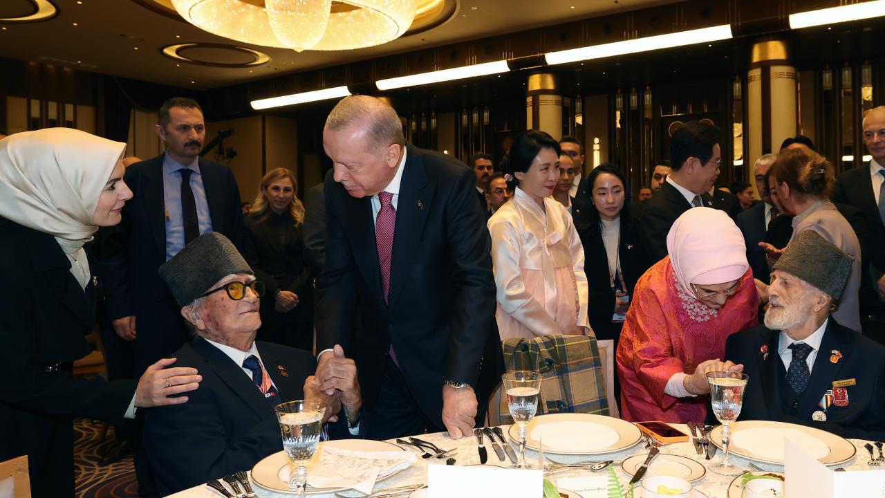 Cumhurbaşkanı Erdoğan, Güney Kore Devlet Başkanı Lee için düzenlenen etkinlikte Kore gazileriyle sohbet etti.