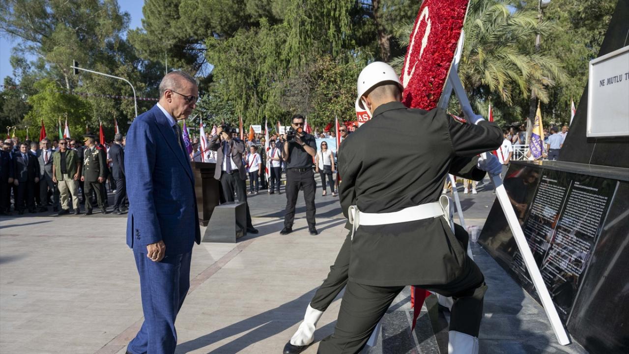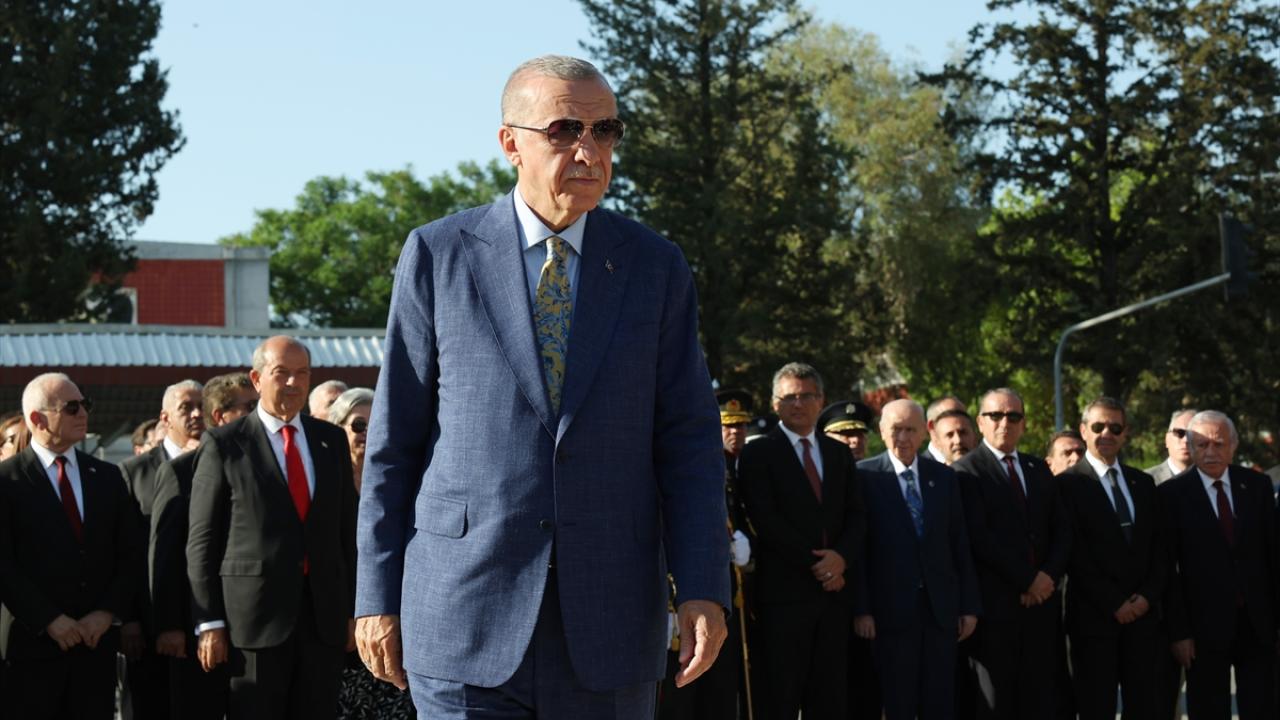 Ercan Havalimanı açılışı ve 20 Temmuz Barış ve Özgürlük Bayramı törenleri için KKTC`nin başkenti Lefkoşa`ya gelen Erdoğan, KKTC Cumhurbaşkanı Ersin Tatar`la Atatürk Anıtı`nı ziyaret etti.