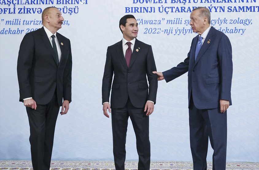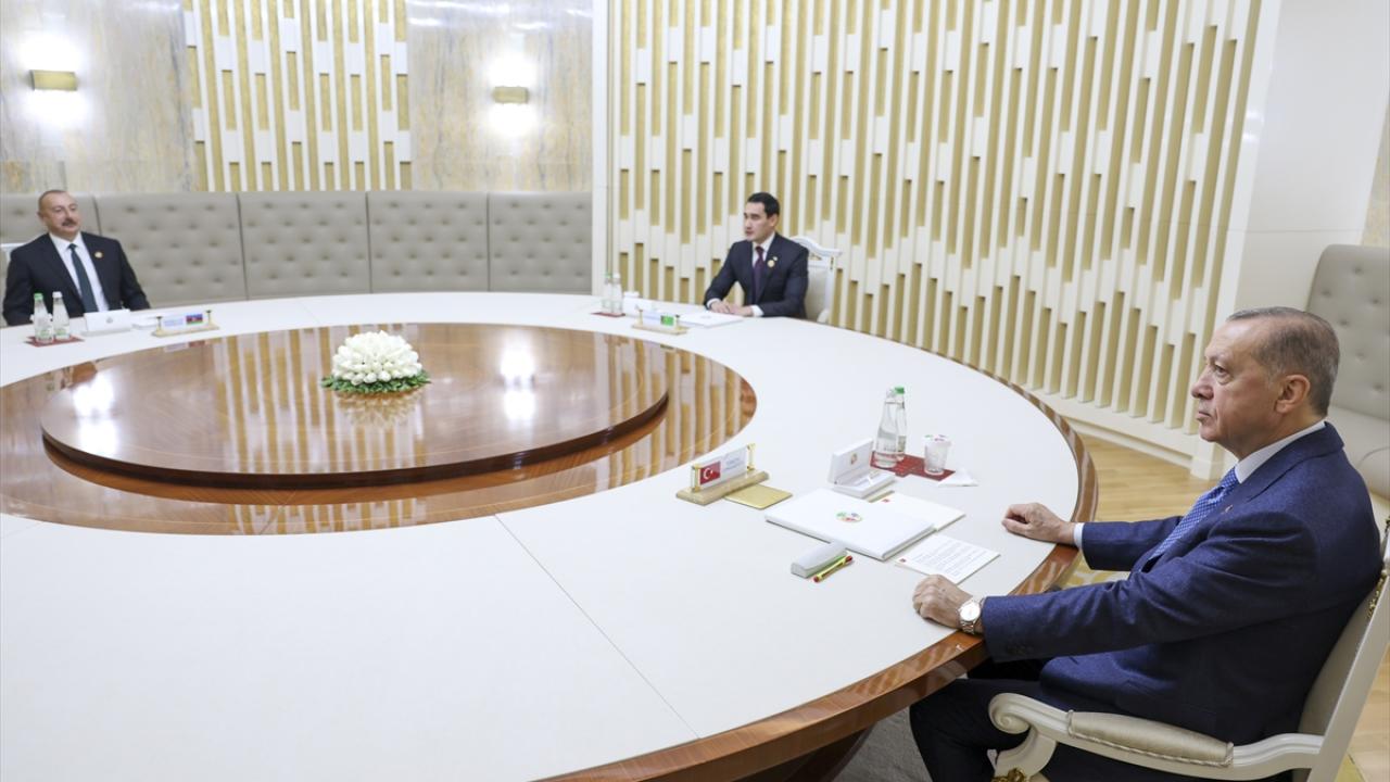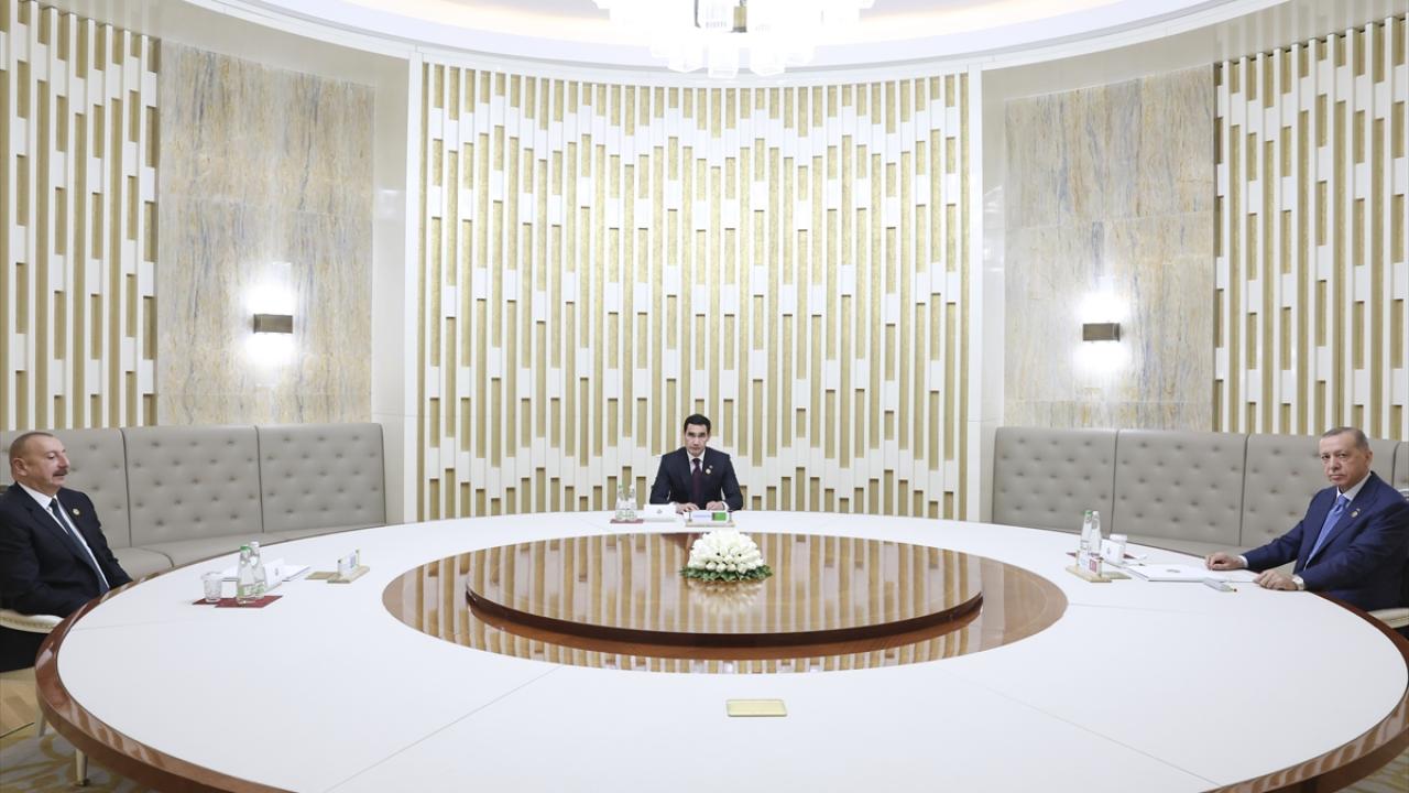 Cumhurbaşkanı Recep Tayyip Erdoğan, ev sahibi Türkmenistan Devlet Başkanı Serdar Berdimuhamedov ve Azerbaycan Cumhurbaşkanı İlham Aliyev ile birlikte fotoğraf çektirdi.