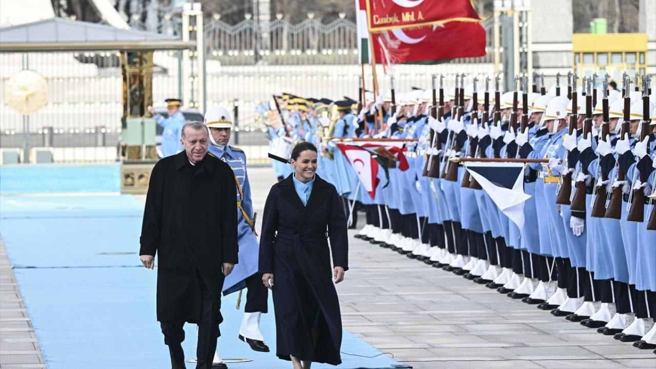 Daha sonra, Macaristan Cumhurbaşkanı Katalin Novak, Muhafız Alayı Tören Kıtası`nı "merhaba asker" diyerek selamladı.