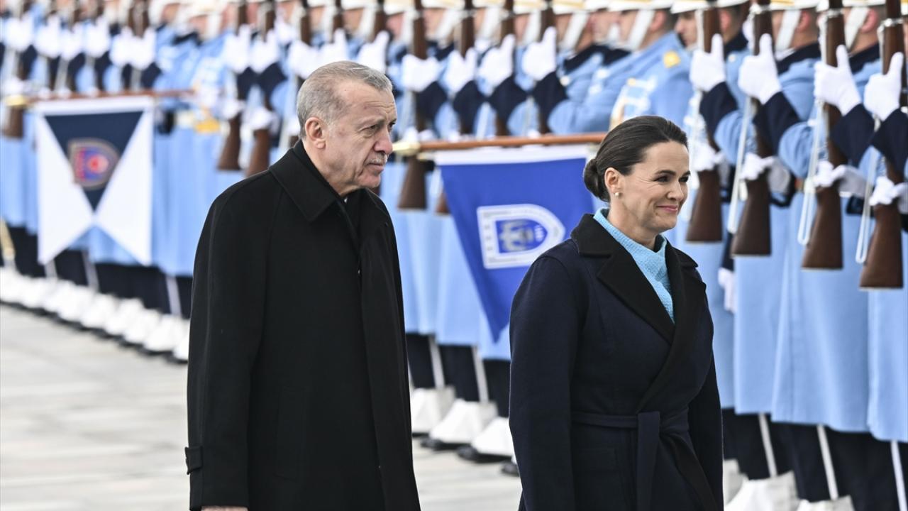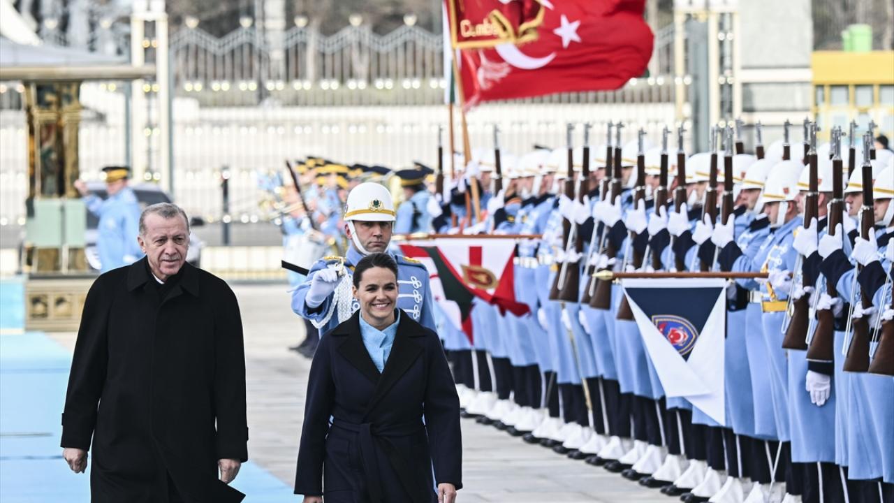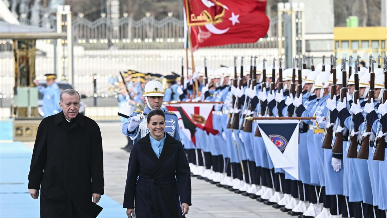 Erdoğan ve Novak`ın tören alanındaki yerlerini almasının ardından 21 pare top atışı eşliğinde iki ülke milli marşları çalındı.