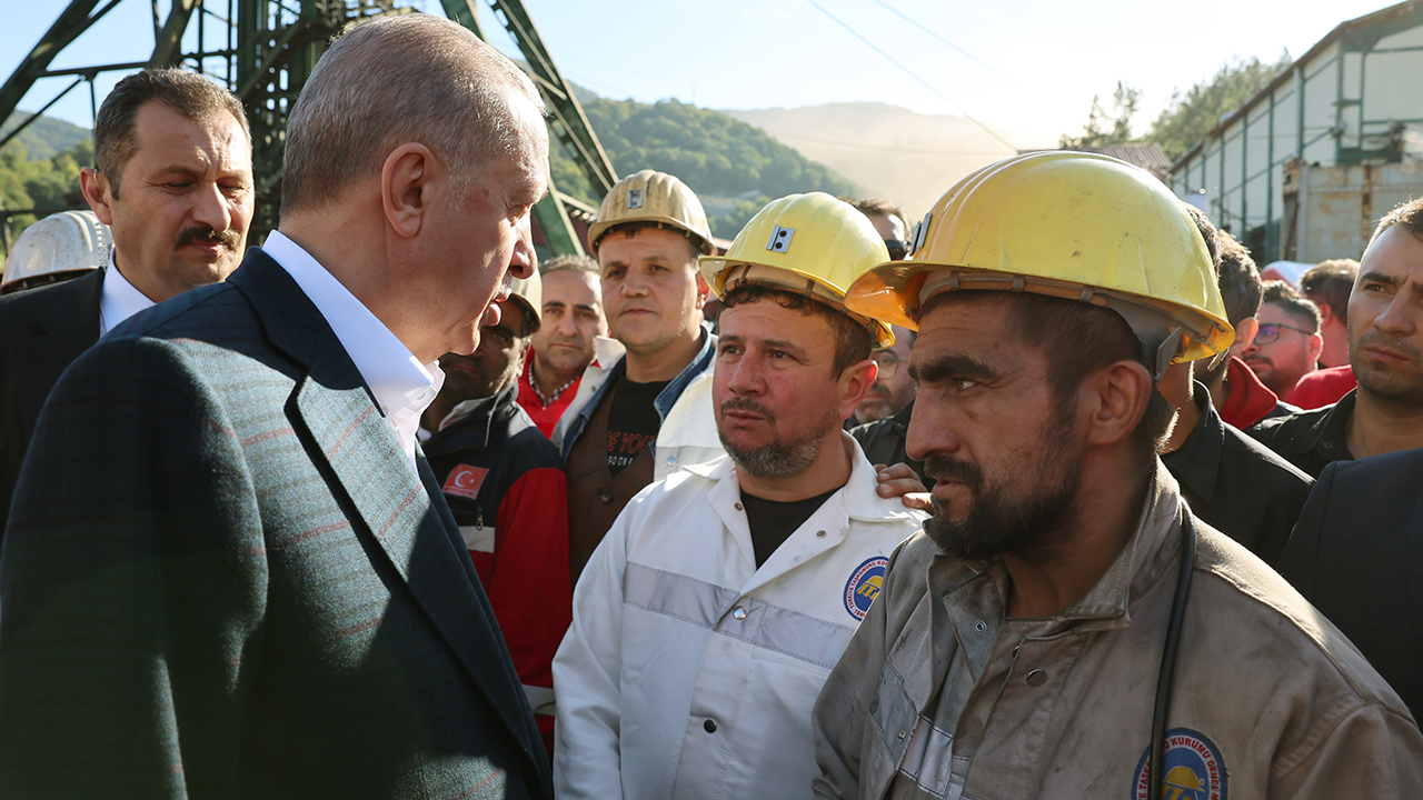 Cumhurbaşkanı Recep Tayyip Erdoğan, Bartın'ın Amasra ilçesindeki maden kazasında yürütülen çalışmaları inceleyerek, koordinasyon merkezinde yetkililerden bilgi aldı.