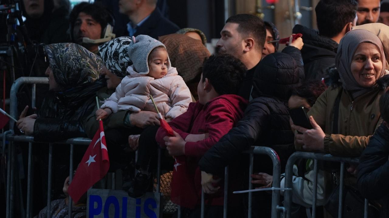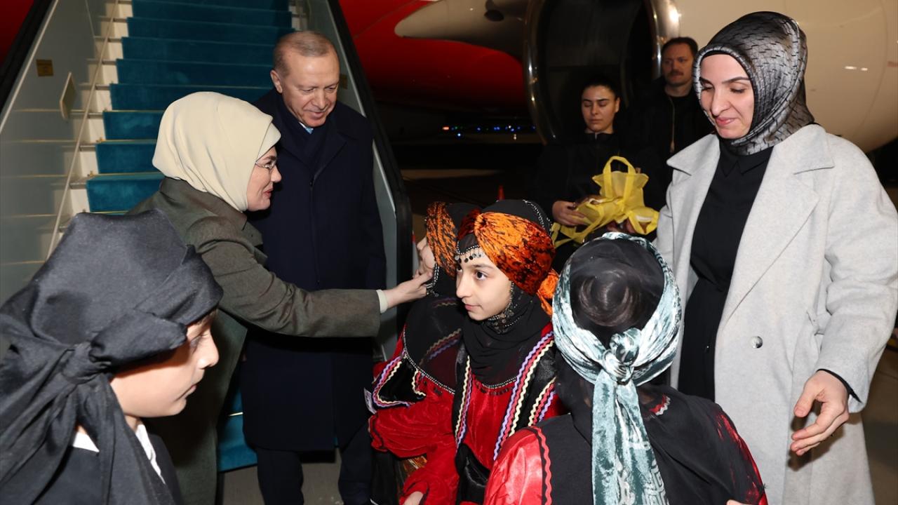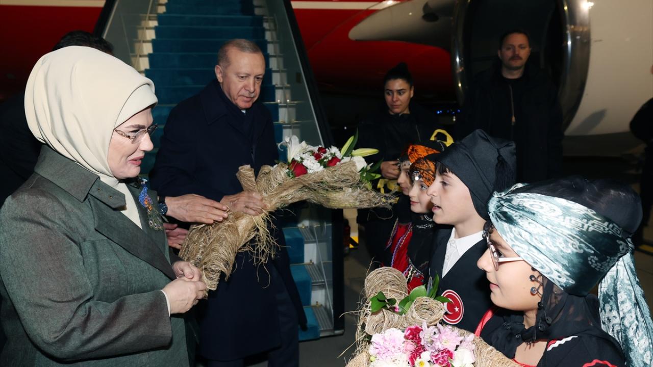 Merkez Camisi önünde kendisini bekleyen hemşehrilerini eşi Emine Erdoğan ile selamlayan Cumhurbaşkanı Erdoğan, makam aracından inerek, otobüse geçti.
