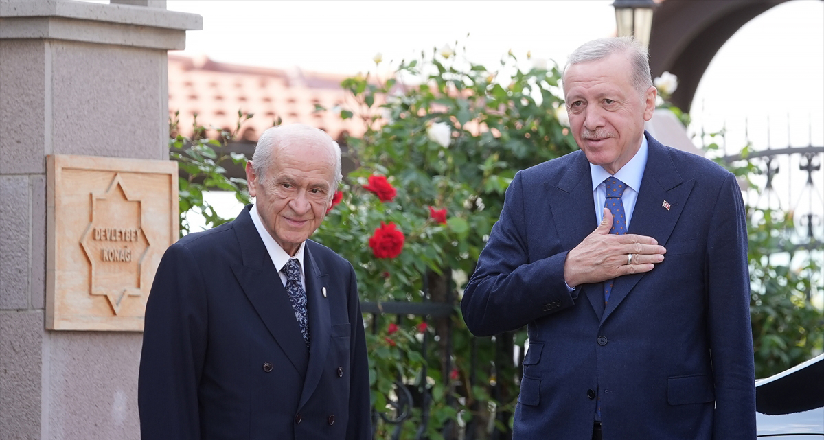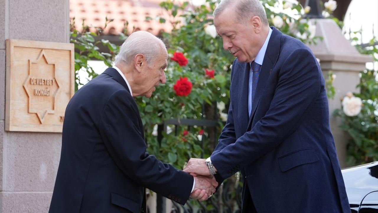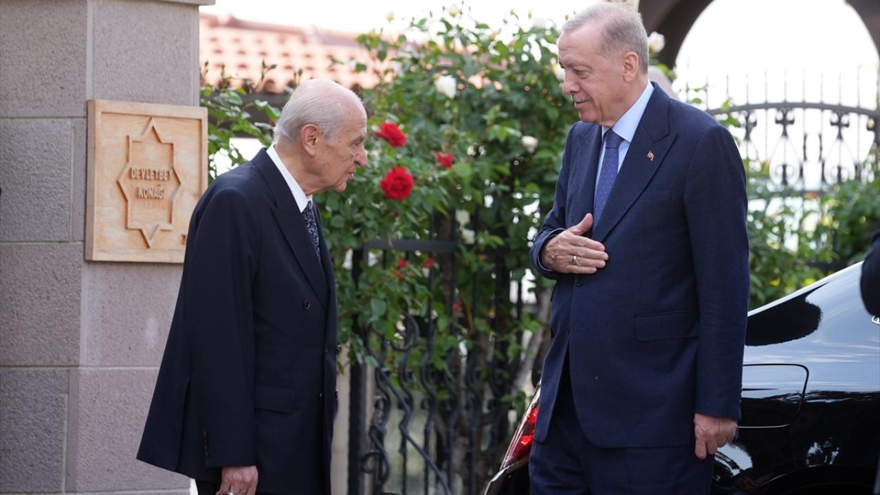 Cumhurbaşkanı Erdoğan, saat 15.50`de, Bahçeli`nin Beytepe`deki konutuna geldi. Devlet Bahçeli, Erdoğan`ı, konutun kapısında karşıladı.