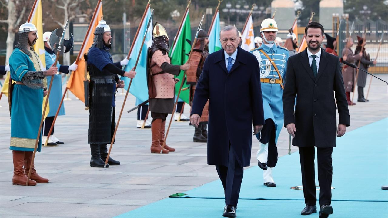 Milatoviç, Muhafız Alayı Tören Kıtası`nı "Merhaba asker" sözleriyle selamladı. Törende, tarihte kurulan 16 Türk devletini temsil eden bayraklar ve askerlere de yer verildi, 21 pare top atışı yapıldı.