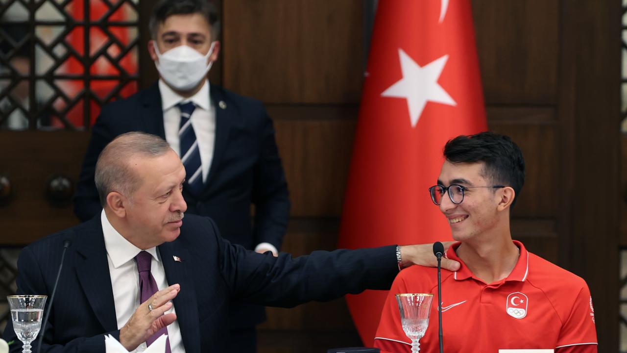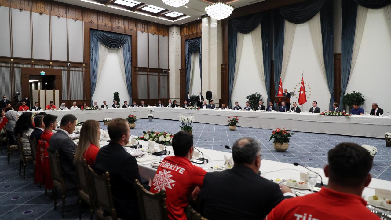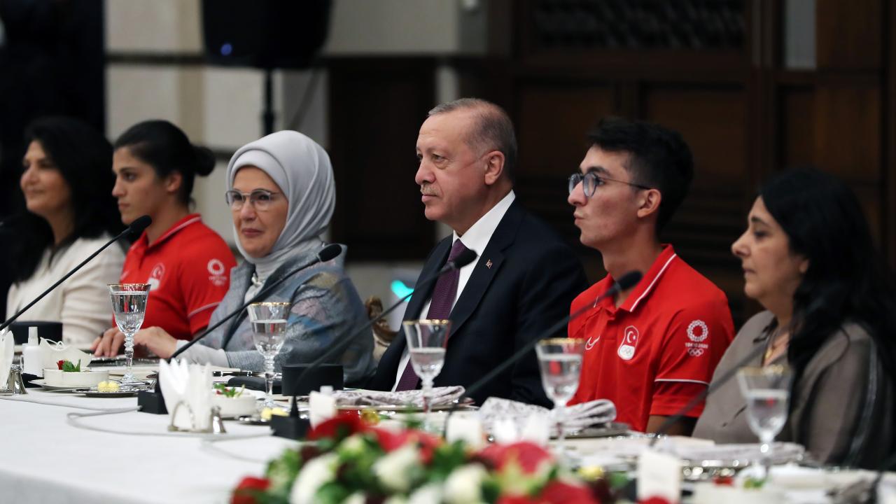 Cumhurbaşkanı Recep Tayyip Erdoğan, 2020 Tokyo Olimpiyat Oyunları'nda madalya alan milli sporcular ile akşam yemeğinde bir araya geldi. Olimpiyatlara katılan 108 sporcuyu tebrik eden Erdoğan, "Sporcularımızı her aşamada desteklemeyi sürdüreceğiz. Paris'te Tokyo 2020'deki başarımızın üstüne çıkacağız" dedi.