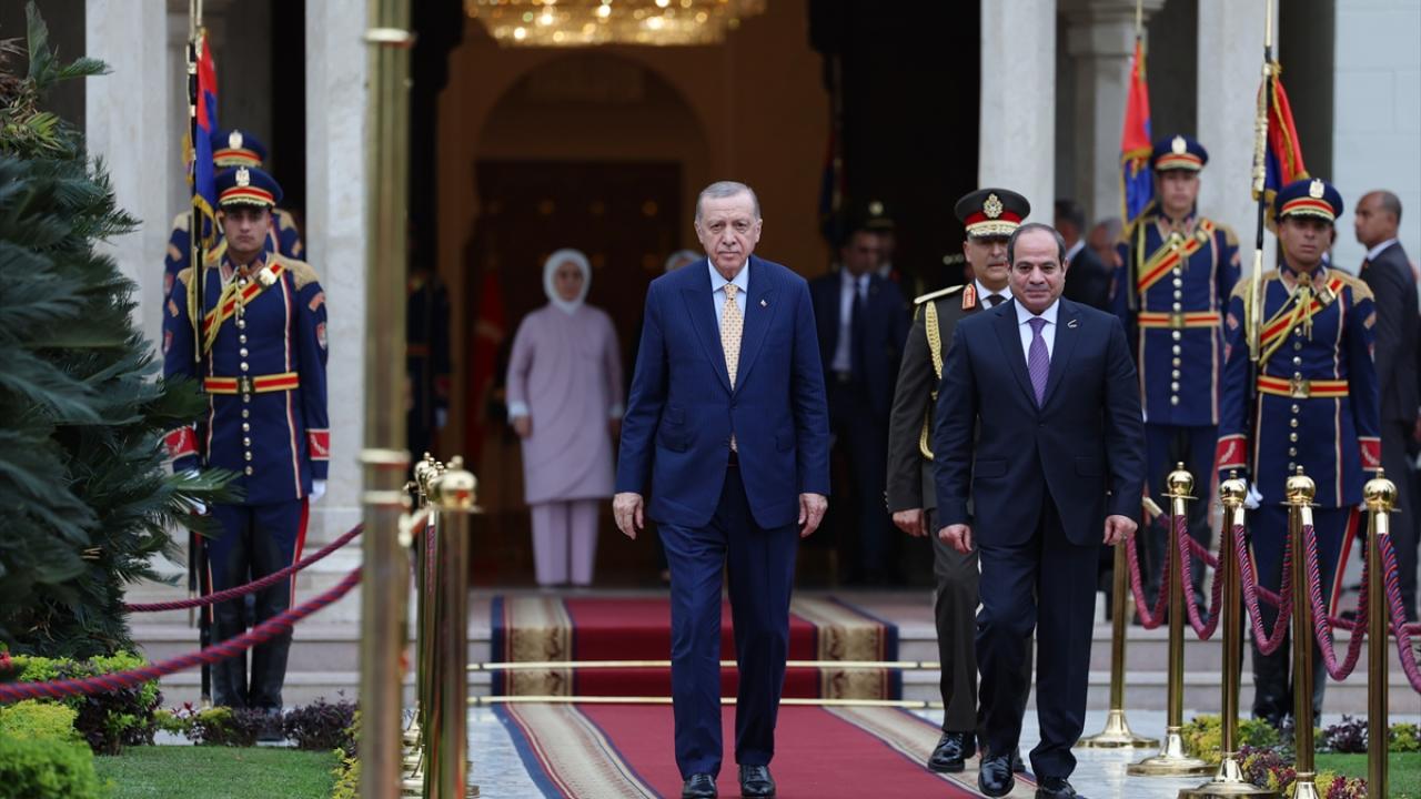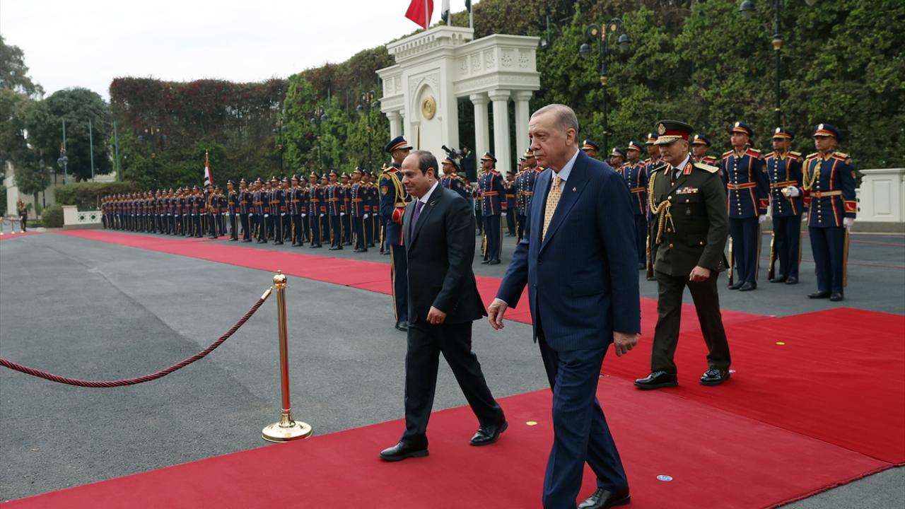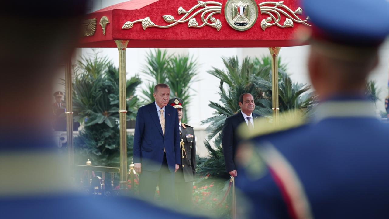 Cumhurbaşkanı Recep Tayyip Erdoğan, resmi temaslarda bulunmak üzere geldiği Mısır`ın başkenti Kahire`de, Mısır Cumhurbaşkanı Abdulfettah es-Sisi tarafından resmi törenle karşılandı.