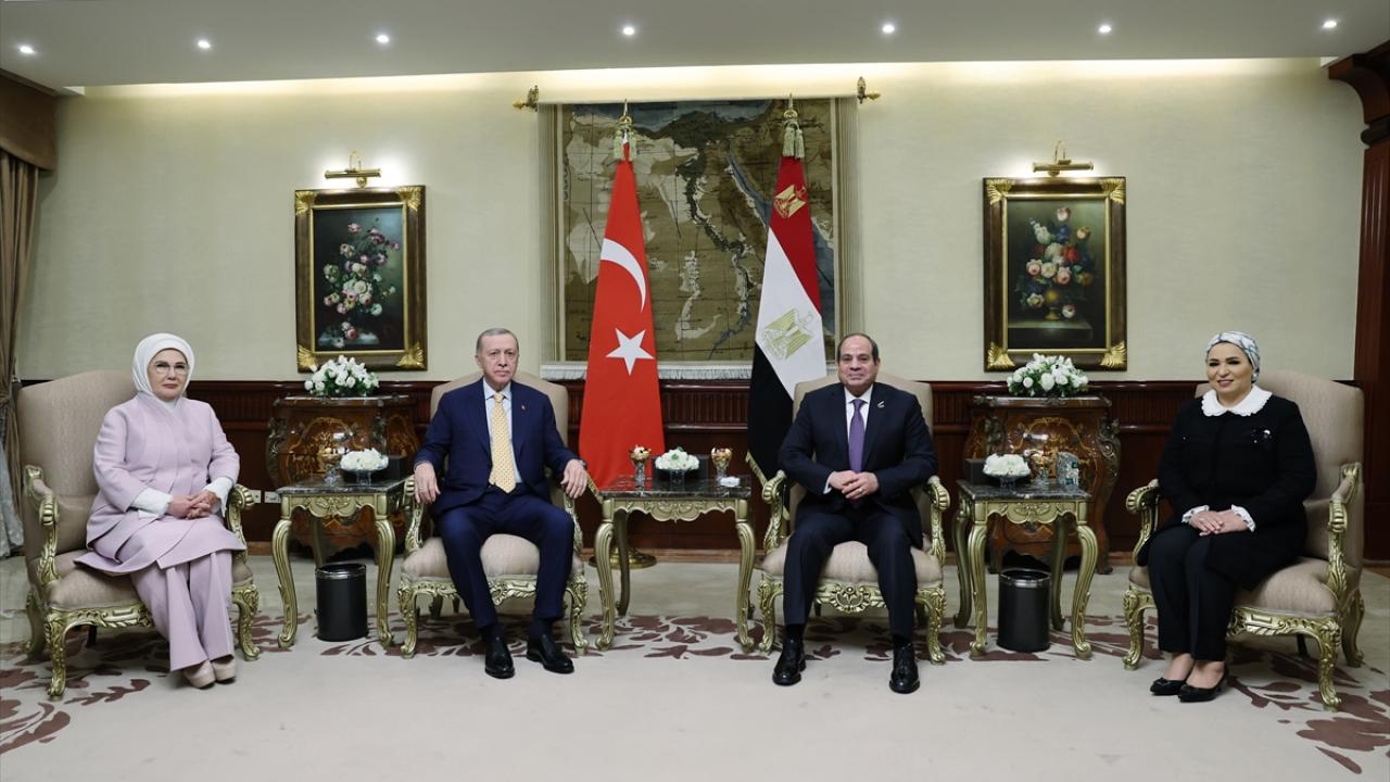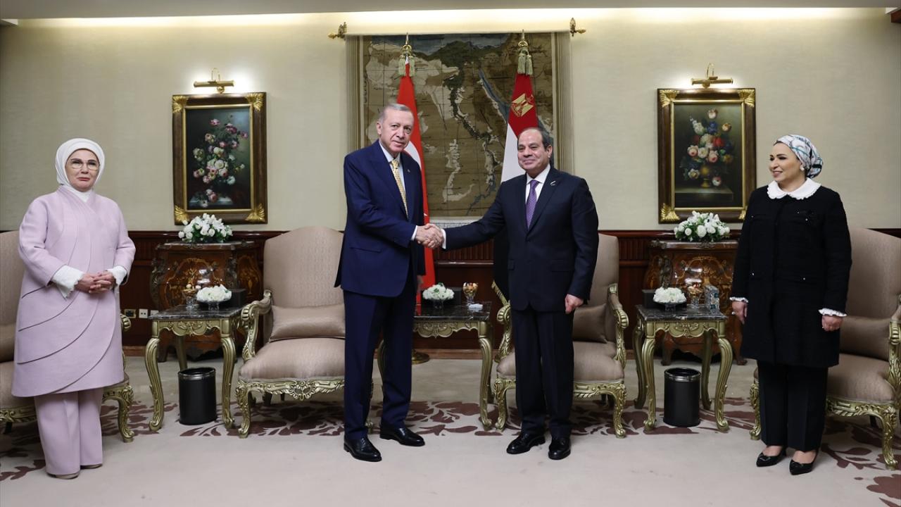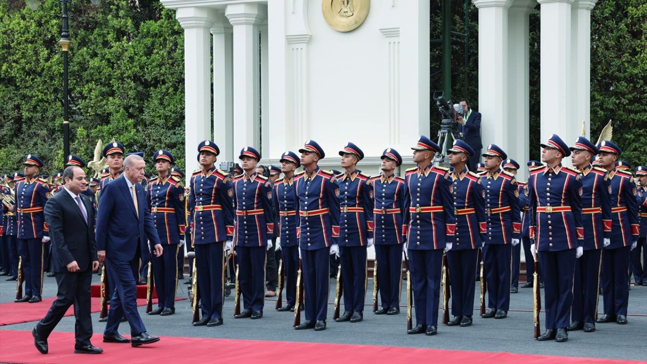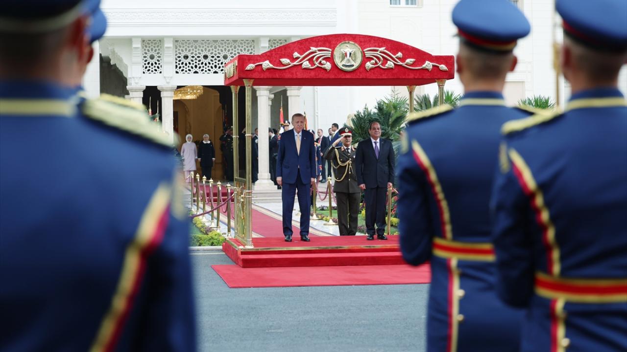 Cumhurbaşkanı Recep Tayyip Erdoğan, resmi temaslarda bulunmak üzere geldiği Mısır`ın başkenti Kahire`de, Mısır Cumhurbaşkanı Abdulfettah es-Sisi tarafından resmi törenle karşılandı.