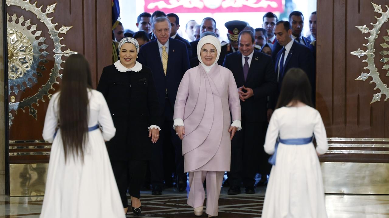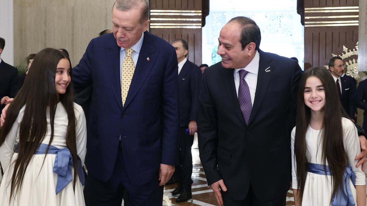 Erdoğan ve Sisi`nin tören alanındaki yerlerini almasının ardından top atışı gerçekleştirildi ve iki ülkenin milli marşları çalındı.