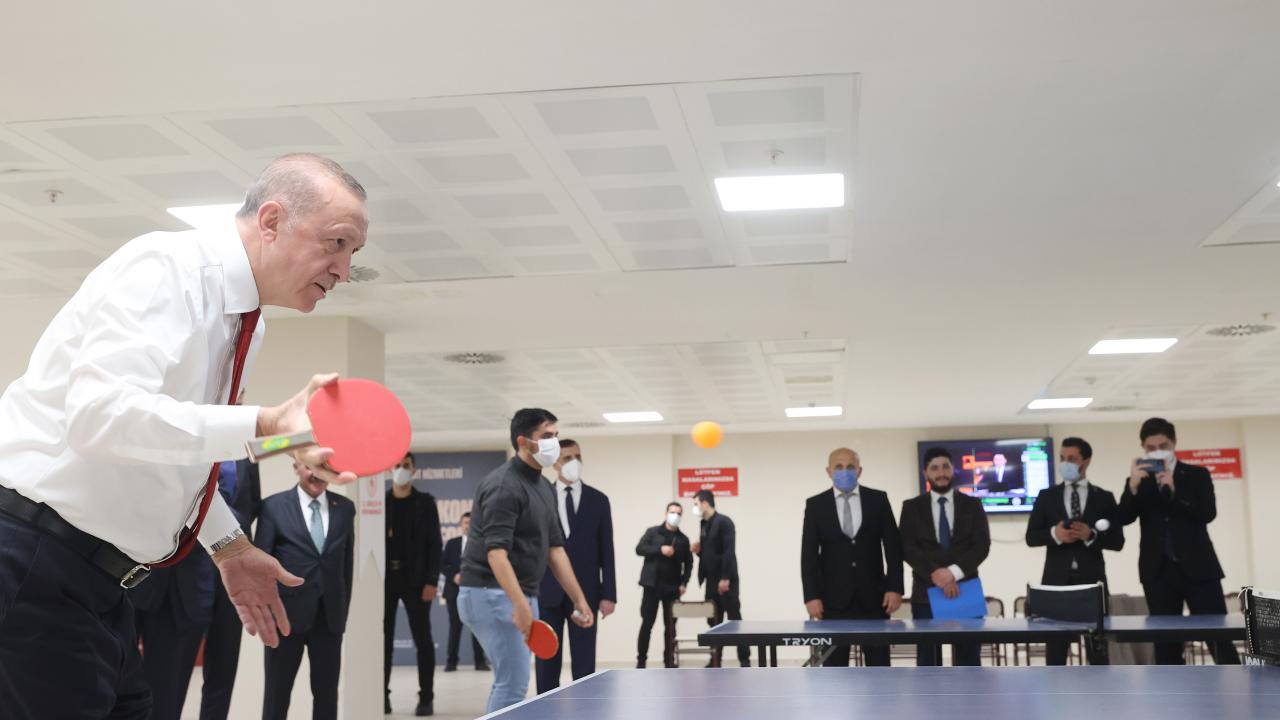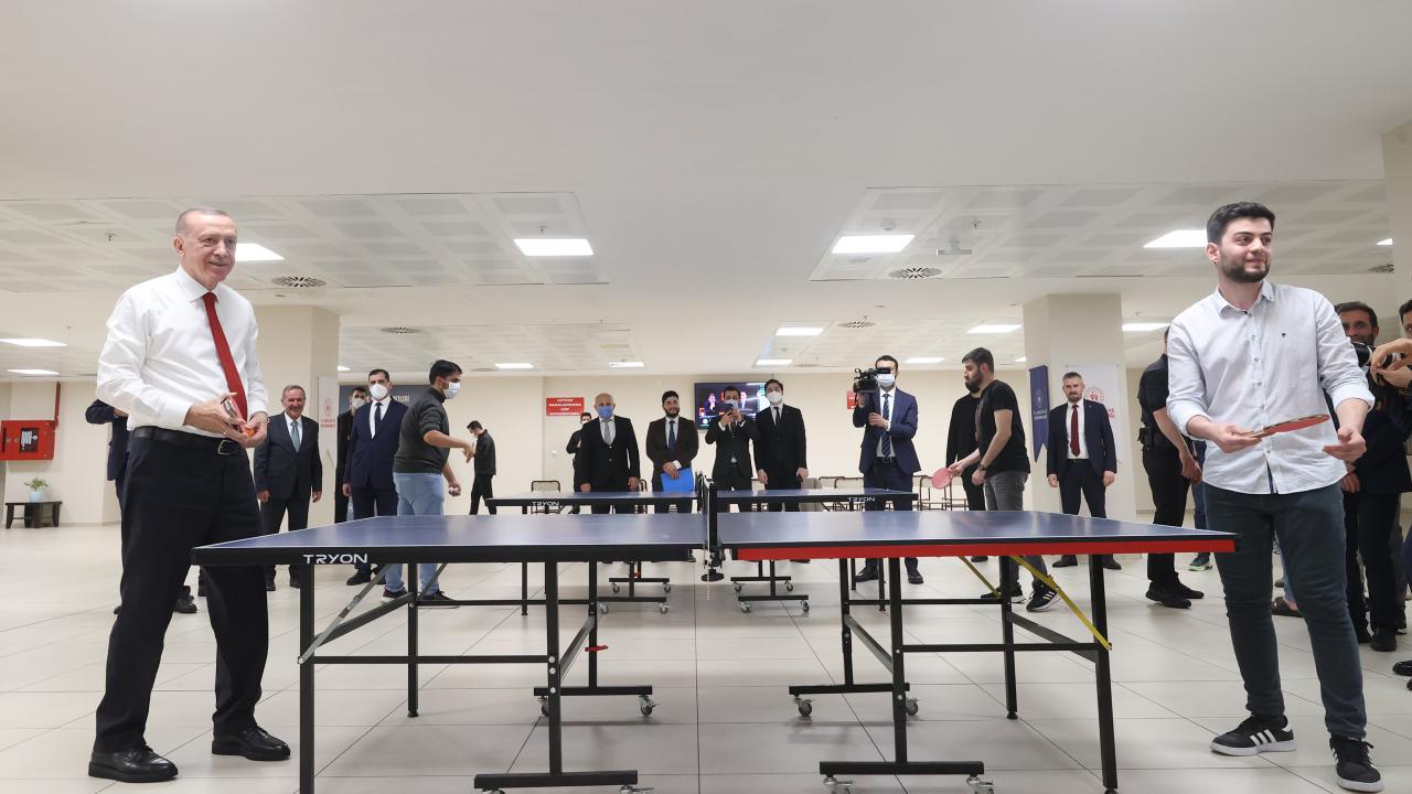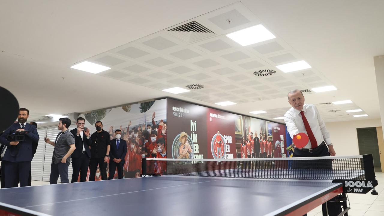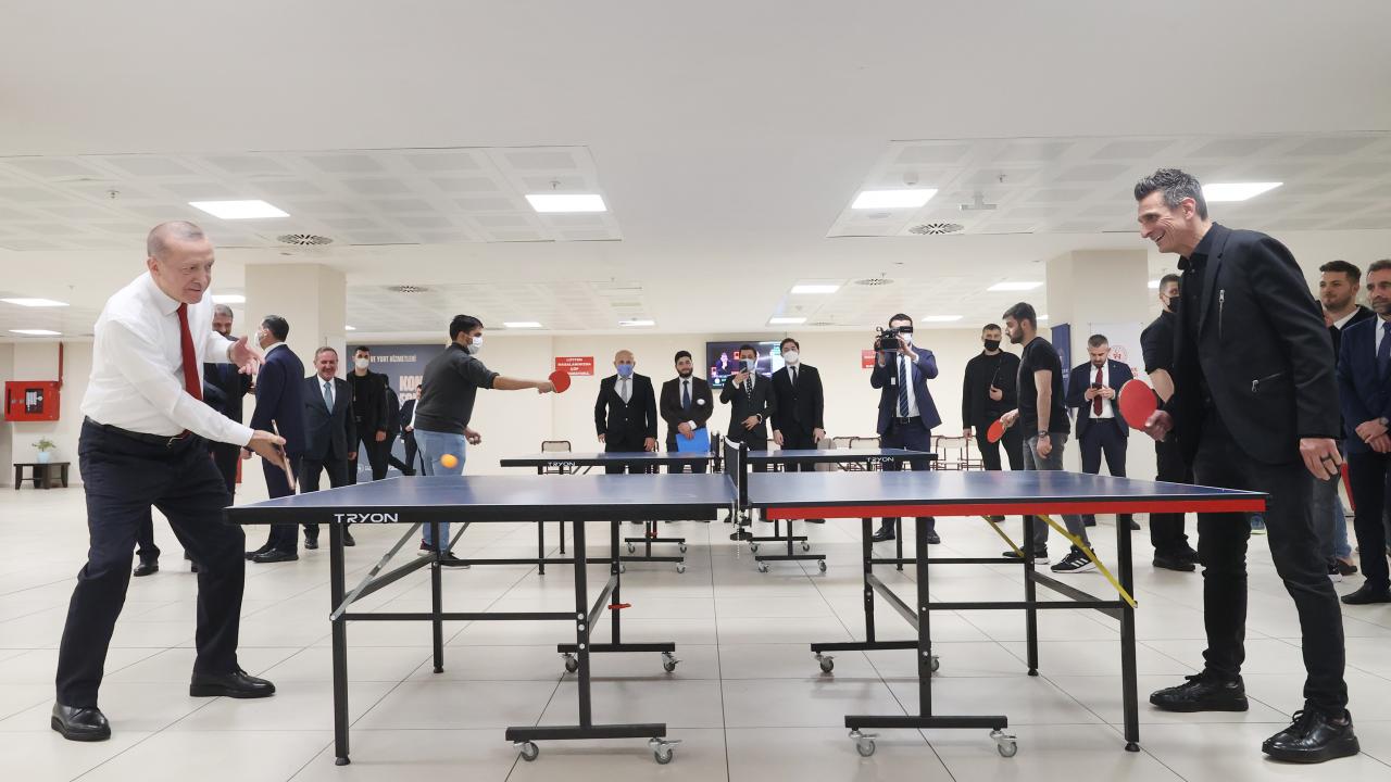 Cumhurbaşkanı Erdoğan, öğrencilerle masa tenisi oynadı