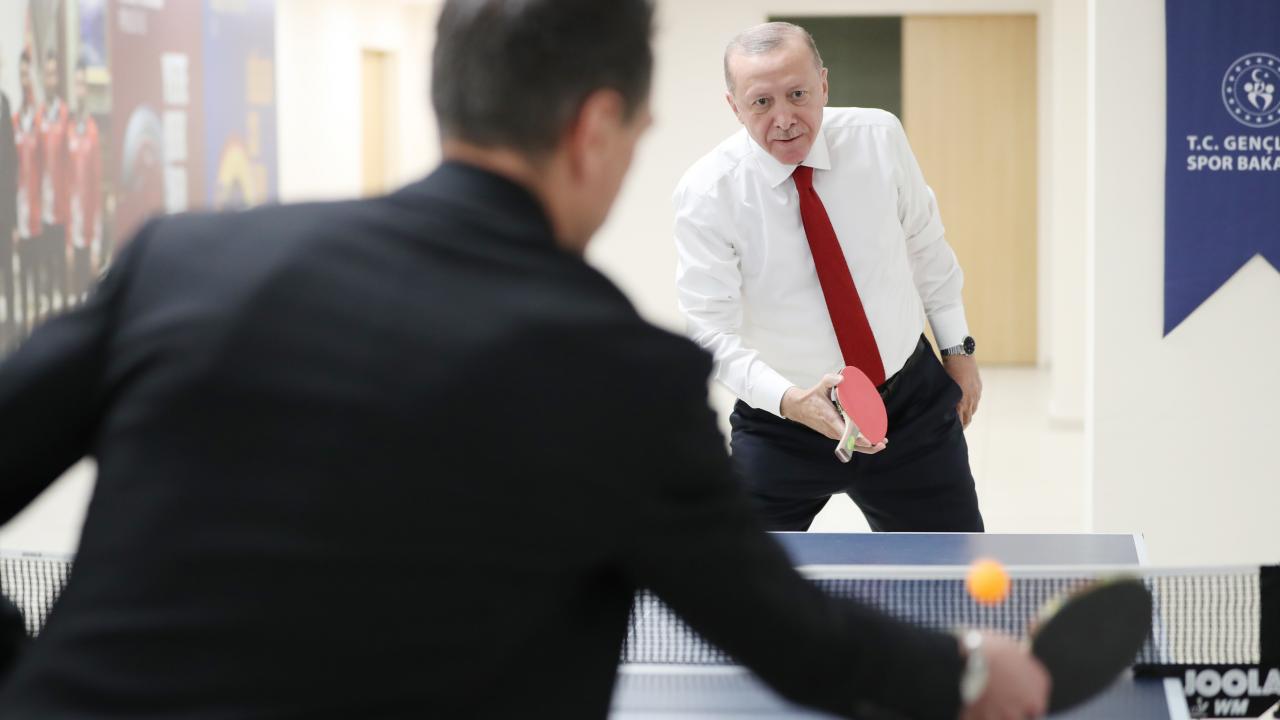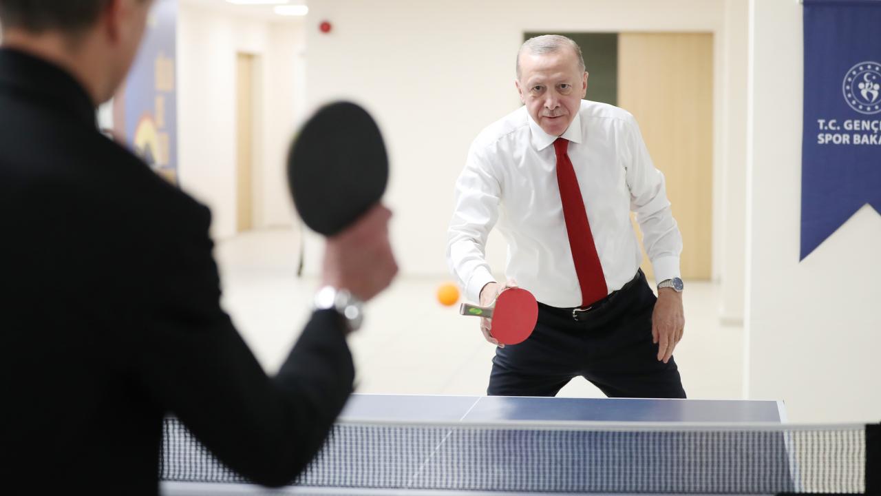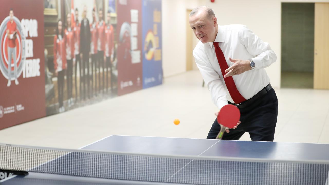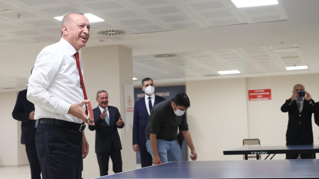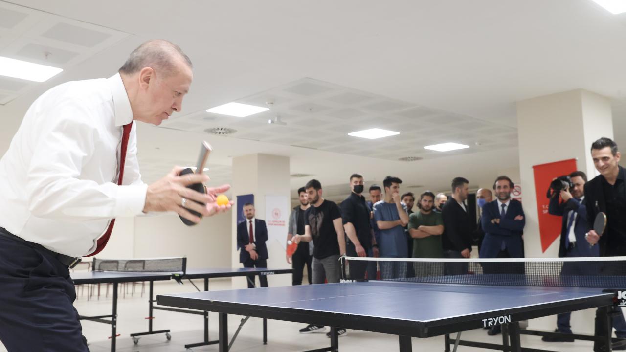 Cumhurbaşkanı Erdoğan, öğrencilerle masa tenisi oynadı