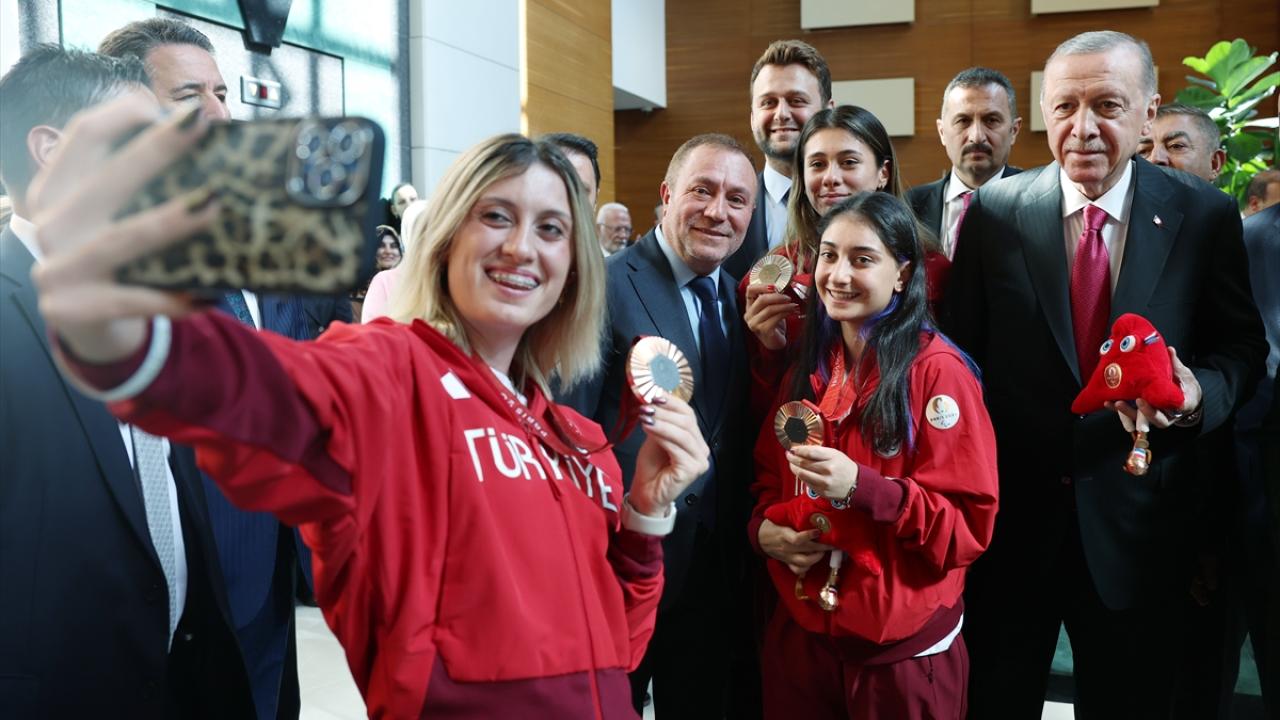 Cumhurbaşkanı Erdoğan, milli sporcularla özçekim yaptı.