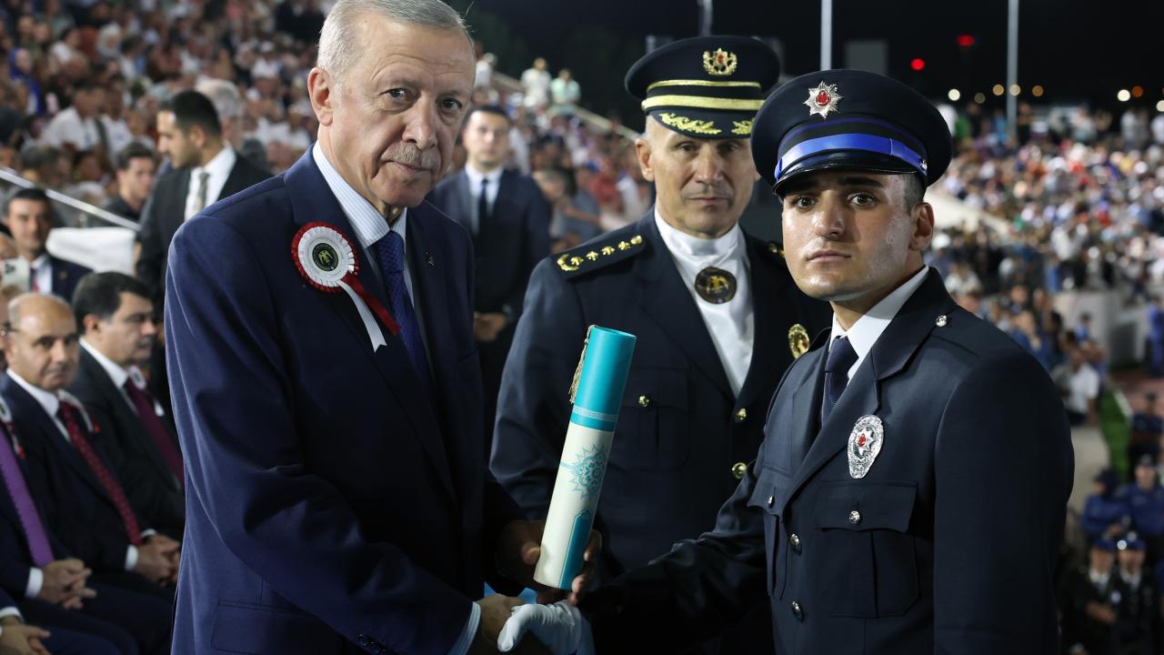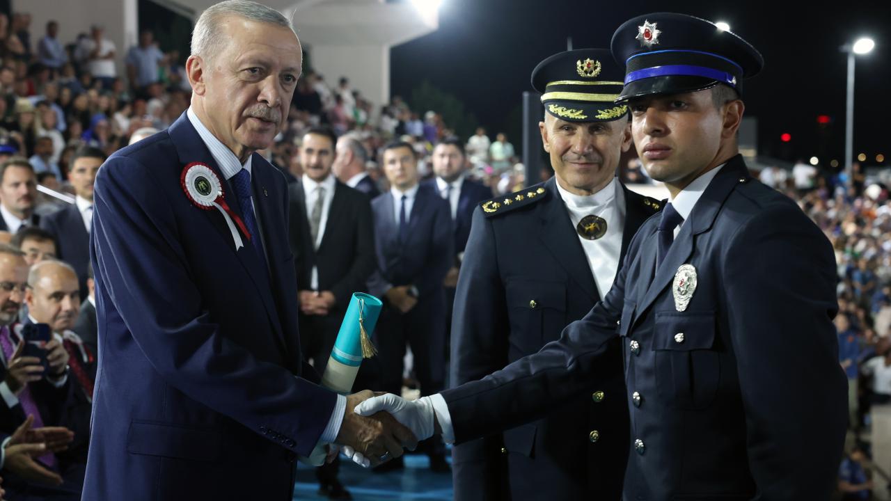 Cumhurbaşkanı Recep Tayyip Erdoğan, Gölbaşı Polis Akademisi'nde Polis Meslek Yüksekokulları Mezuniyet Töreni'ne katıldı. Erdoğan, törende dereceye giren mezunlara diplomalarını verdi.