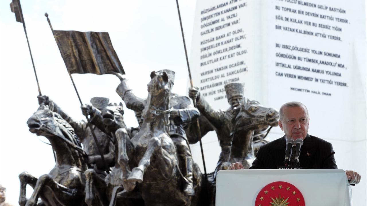 Erdoğan, top seslerinin artık Ulus`tan duyulmaya başlandığı bir süreçte kahraman ordunun adeta düşmana "dur" diyerek istiklal ile sonuçlanacak Büyük Taarruz`un müjdesini bu bölgede verdiğini kaydetti.