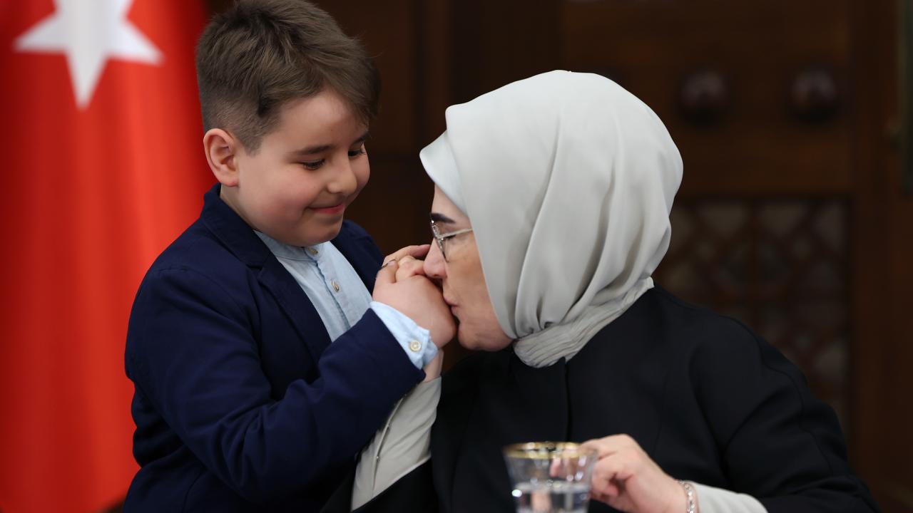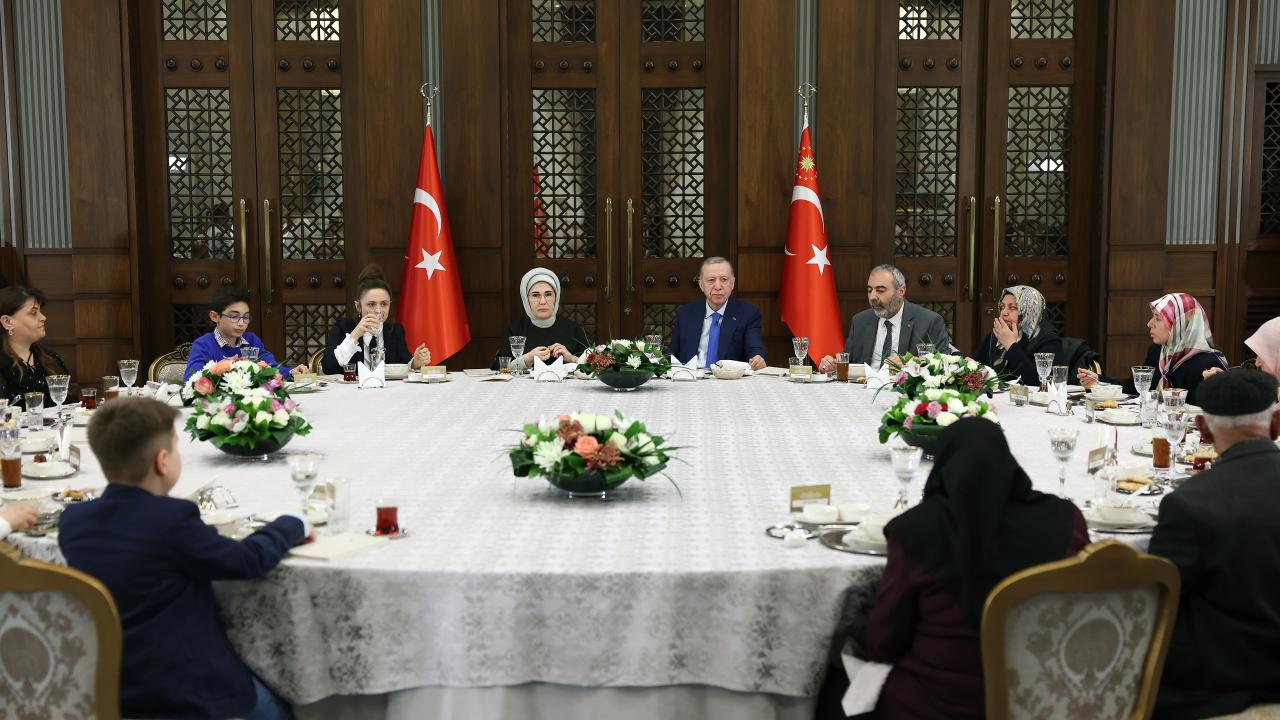 Cumhurbaşkanı Recep Tayyip Erdoğan ve eşi Emine Erdoğan, Cumhurbaşkanlığı Külliyesi'nde şehit aileleri ile iftar programında bir araya geldi.