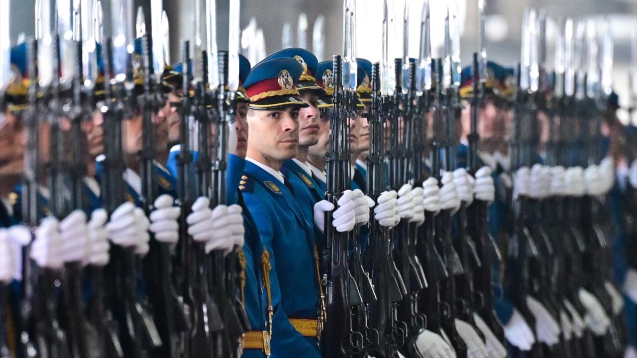 Cumhurbaşkanı Erdoğan`ı, Sırbistan Cumhurbaşkanlığı Sarayı`nda Sırbistan Cumhurbaşkanı Aleksandar Vucic karşıladı. İki ülke milli marşları okunurken 7 pare top atışı yapıldı.