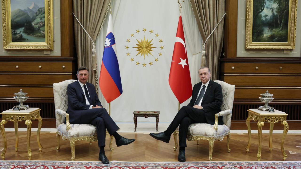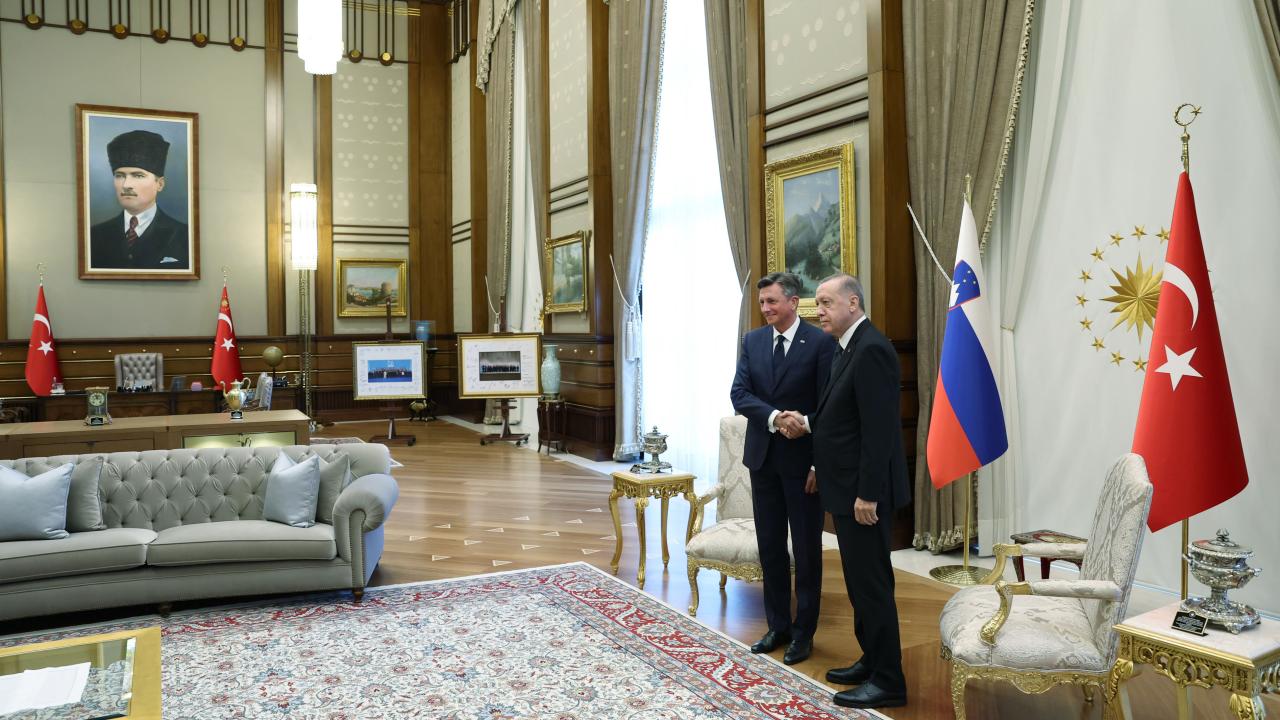 Erdoğan, Slovenya Cumhurbaşkanı Borut Pahor ile Cumhurbaşkanlığı Külliyesi`nde baş başa görüştü.