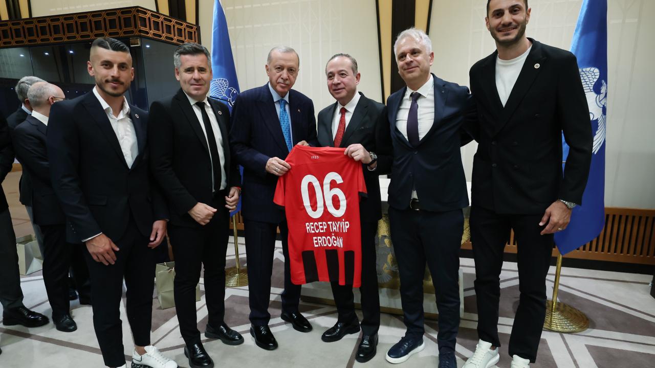 Cumhurbaşkanı Recep Tayyip Erdoğan, Süper Lig'e yükselen üç kulübün yönetim kurulunu, teknik heyetini ve futbolcularını kabul etti.
