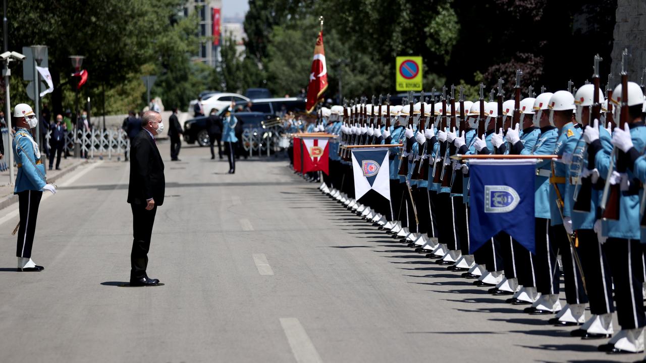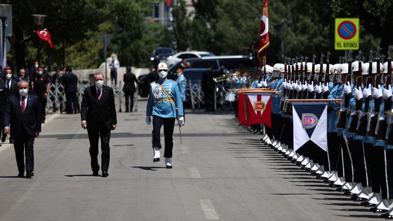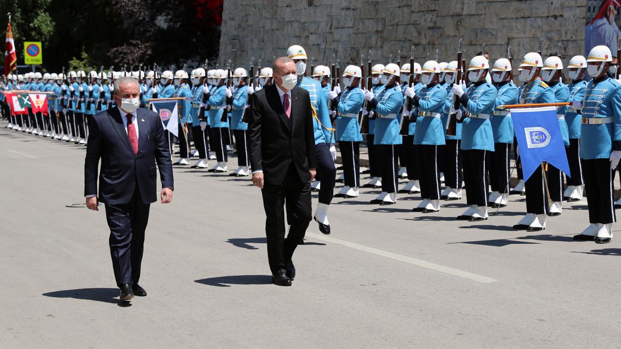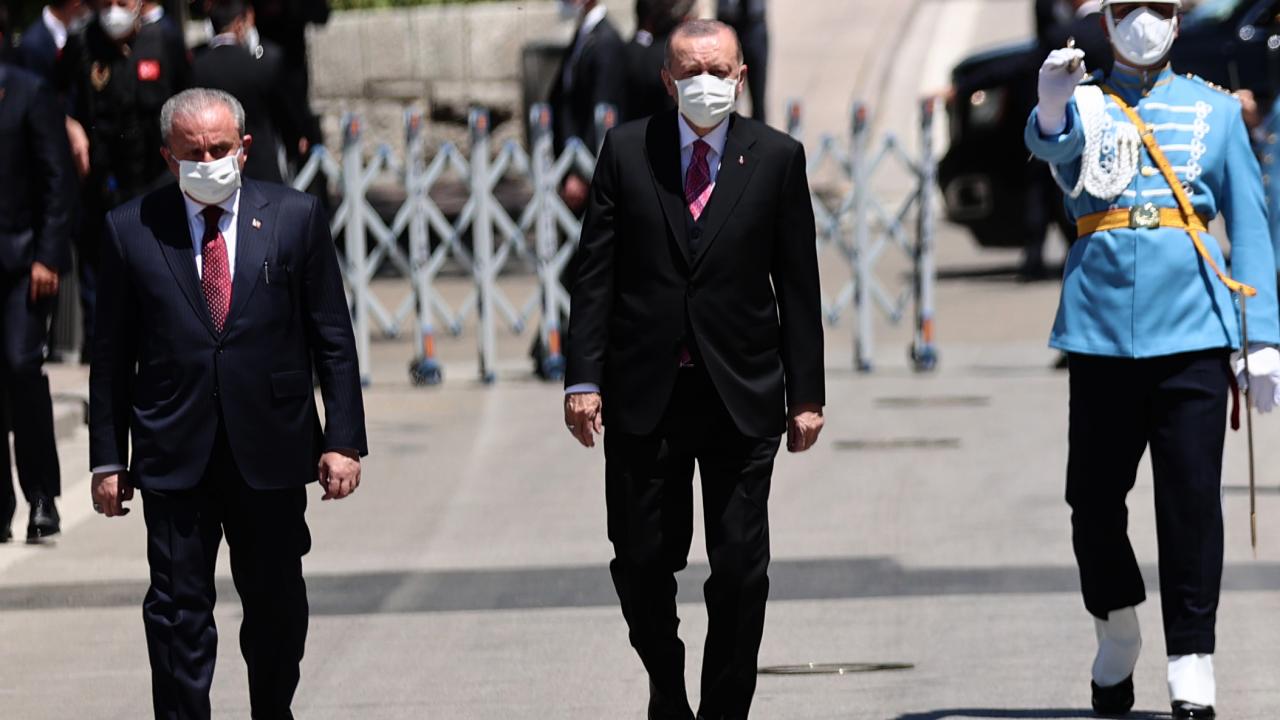Türkiye Cumhurbaşkanı Recep Tayyip Erdoğan TBMM' ye geldi. Erdoğan, TBMM Başkanı Mustafa Şentop tarafından resmi törenle karşılandı.