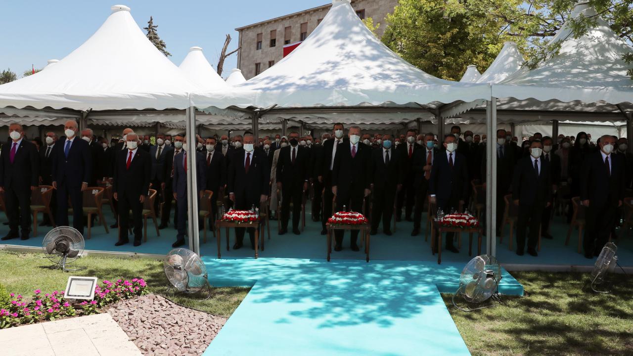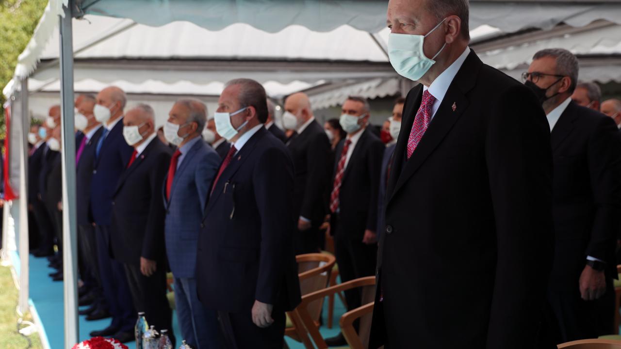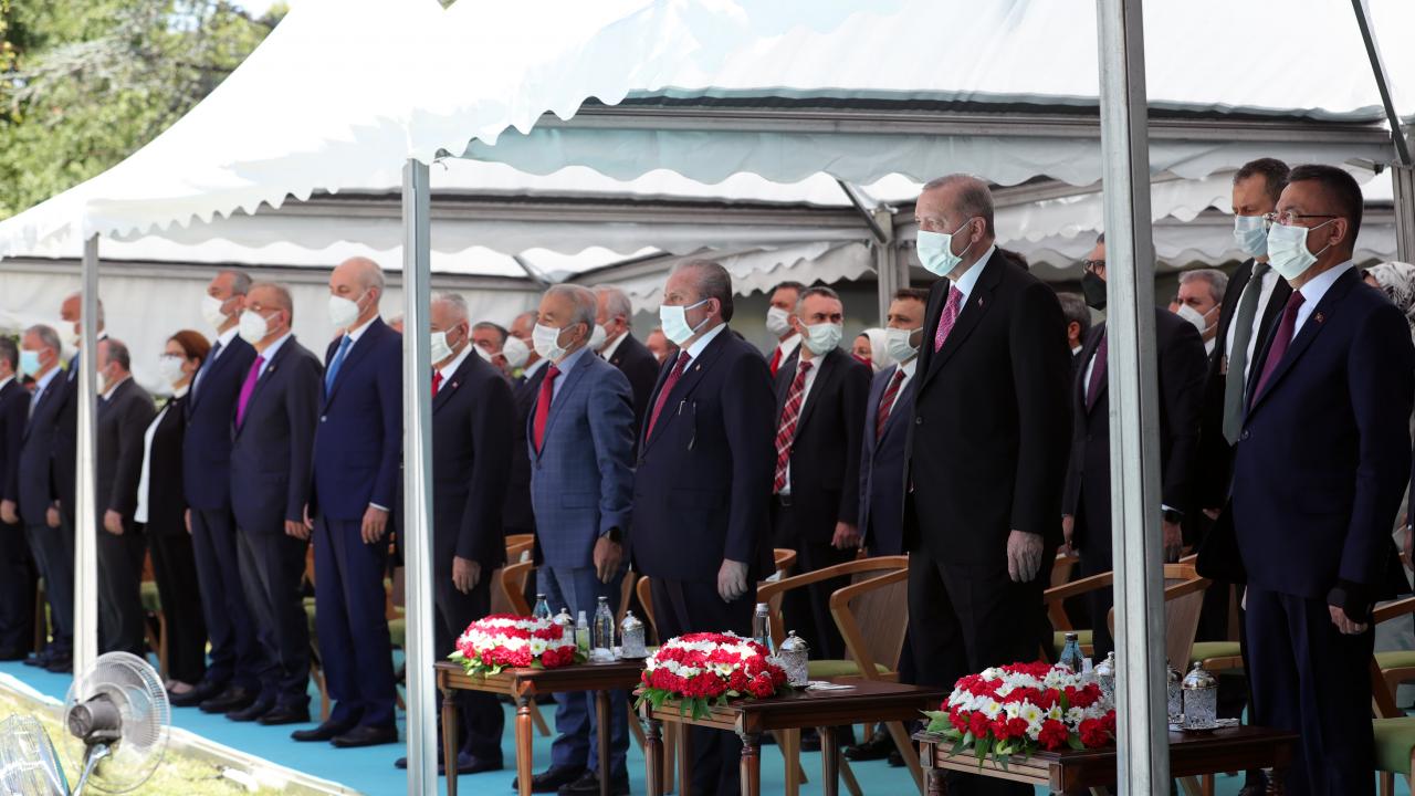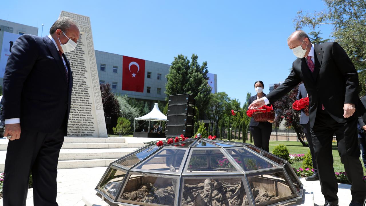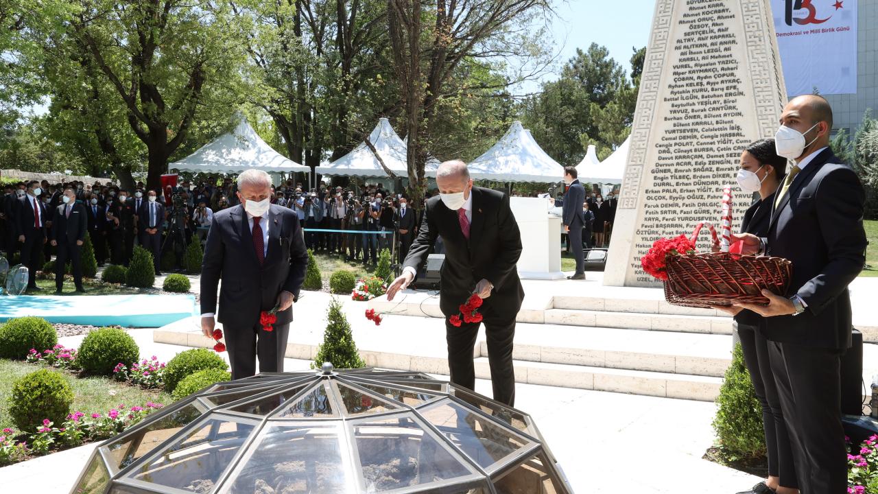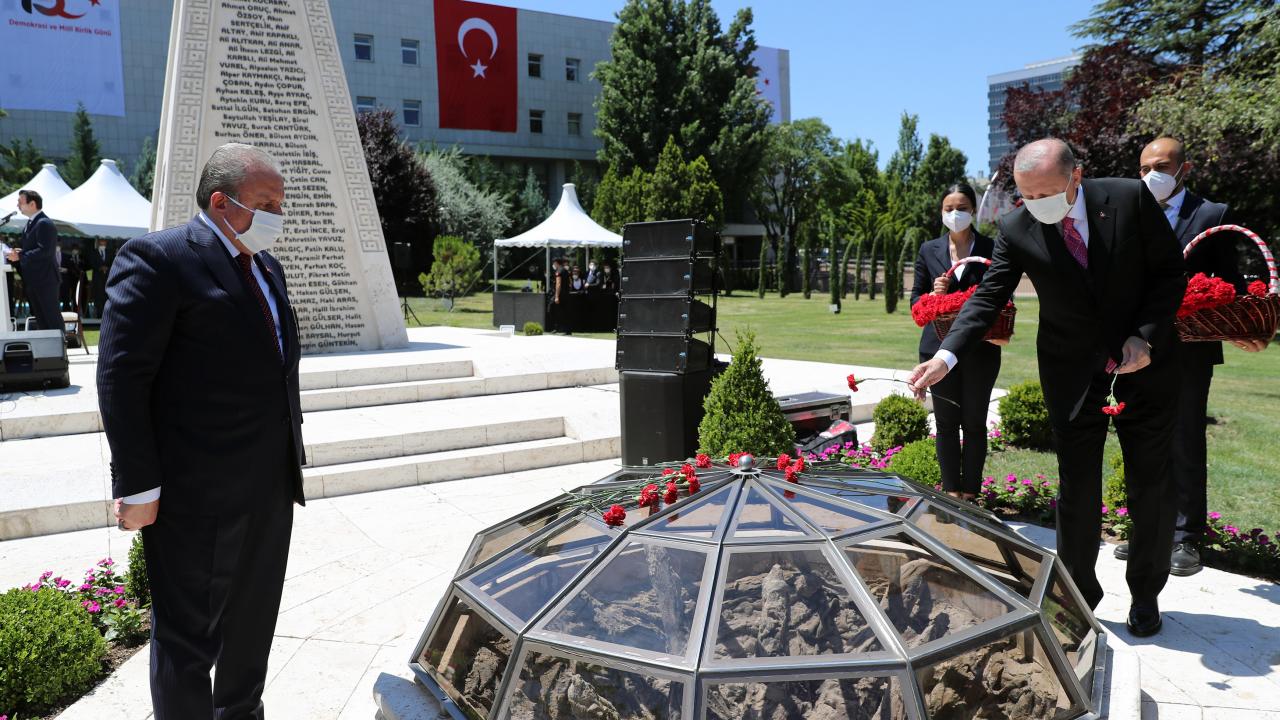Cumhurbaşkanı Recep Tayyip Erdoğan, TBMM Başkanı Mustafa Şentop ile beraber, TBMM`de düzenlenen 15 Temmuz Şehitlerini Anma Programı`na katıldı.