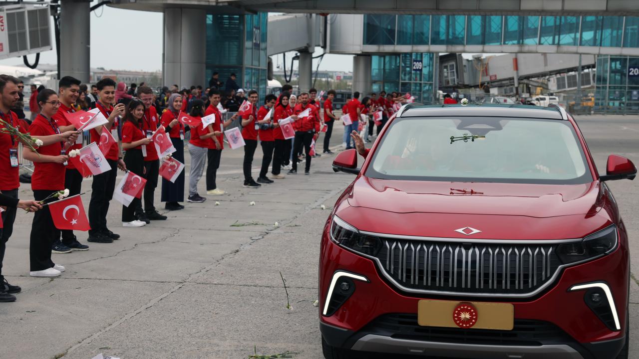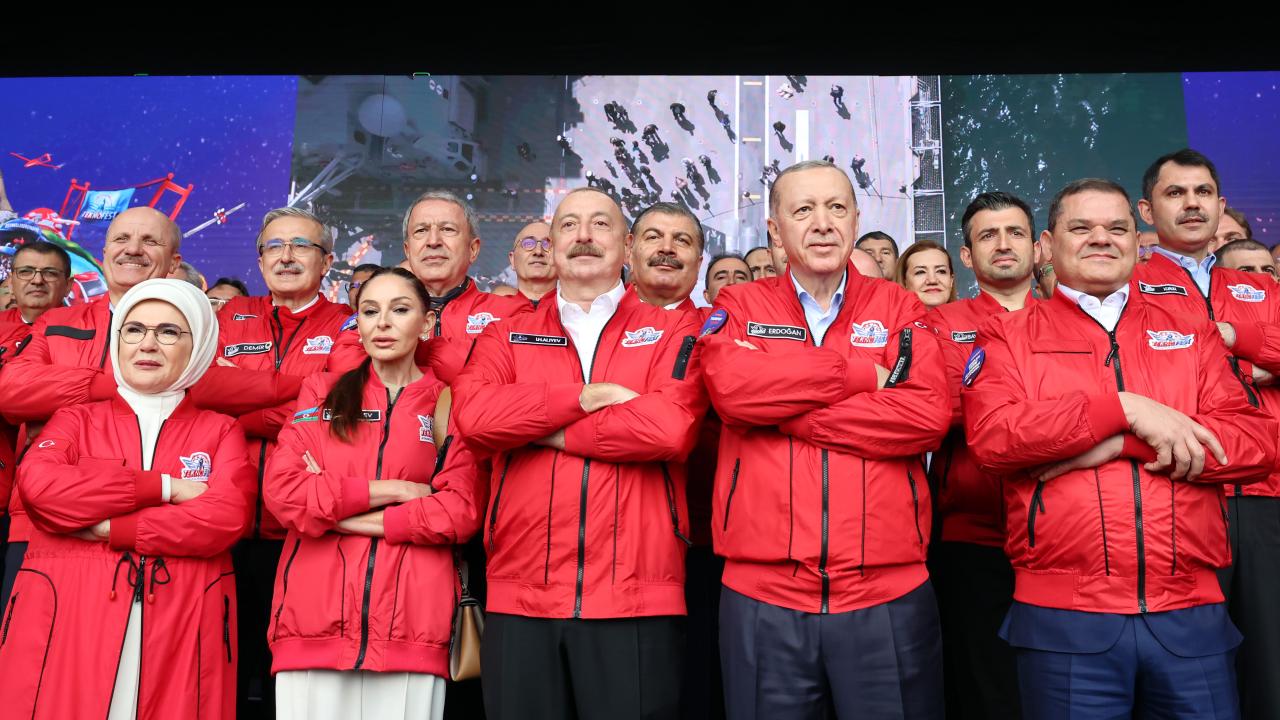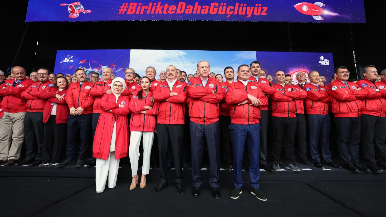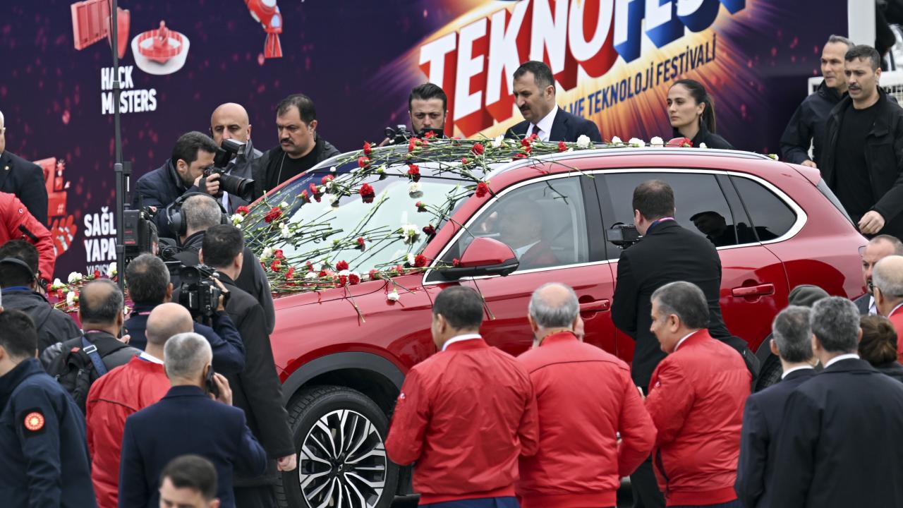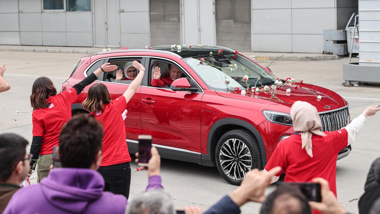Cumhurbaşkanı Recep Tayyip Erdoğan ile eşi Emine Erdoğan ve Azerbaycan Cumhurbaşkanı İlham Aliyev ile eşi Mihriban Aliyeva, festival alanına Anadolu kırmızısı Togg T10X ile geldi.