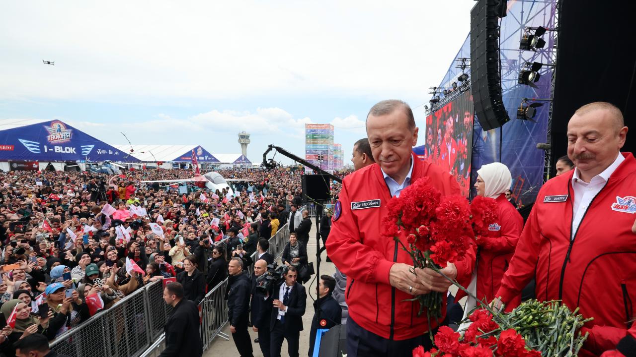 Cumhurbaşkanı Recep Tayyip Erdoğan, Azerbaycan Cumhurbaşkanı İlham Aliyev ile birlikte üçüncü gününde İstanbul Atatürk Havalimanı'nda devam eden TEKNOFEST'e katıldı.