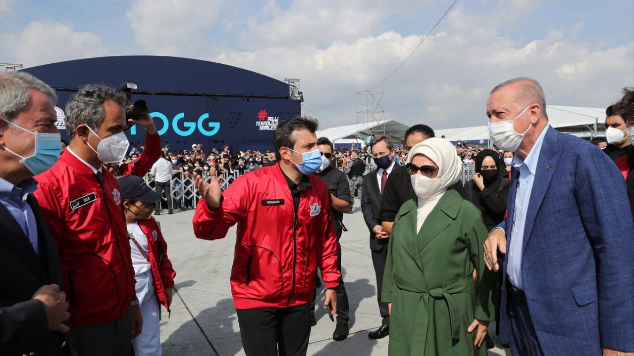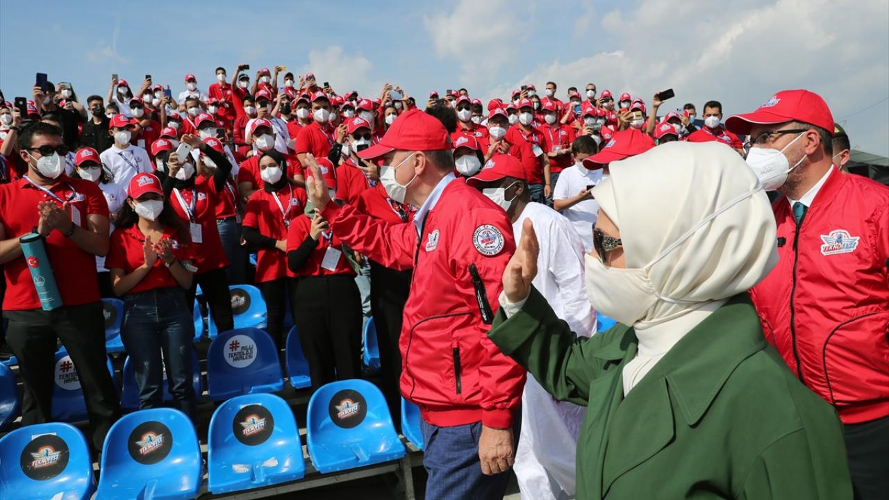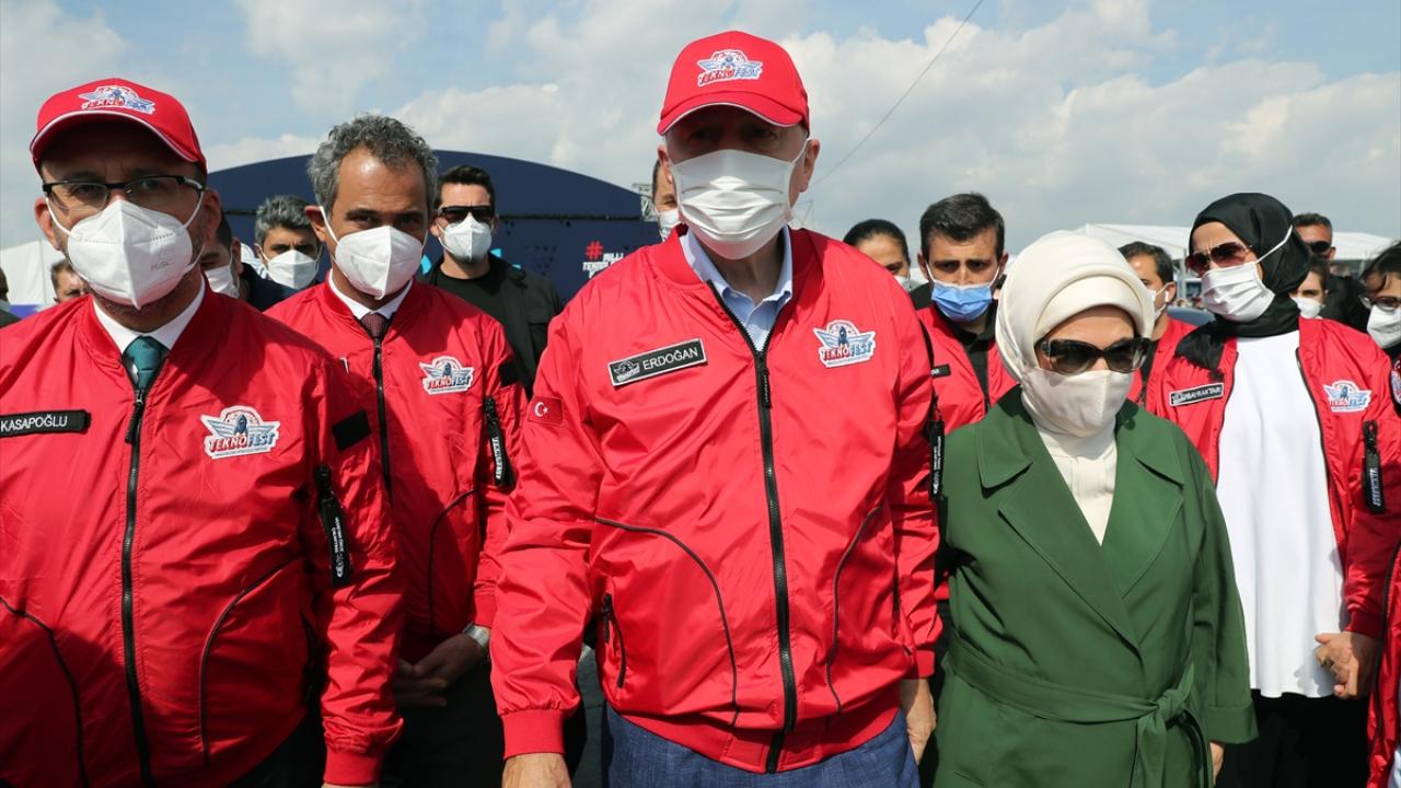 Cumhurbaşkanı Recep Tayyip Erdoğan ve eşi Emine Erdoğan TEKNOFEST'e geldi. Erdoğan, Hürkuş ve Akıncı'nın da yer aldığı "Milli Kanatlar Gösterisi"ni izlemek üzere tribüne geçerken vatandaşları da selamladı.