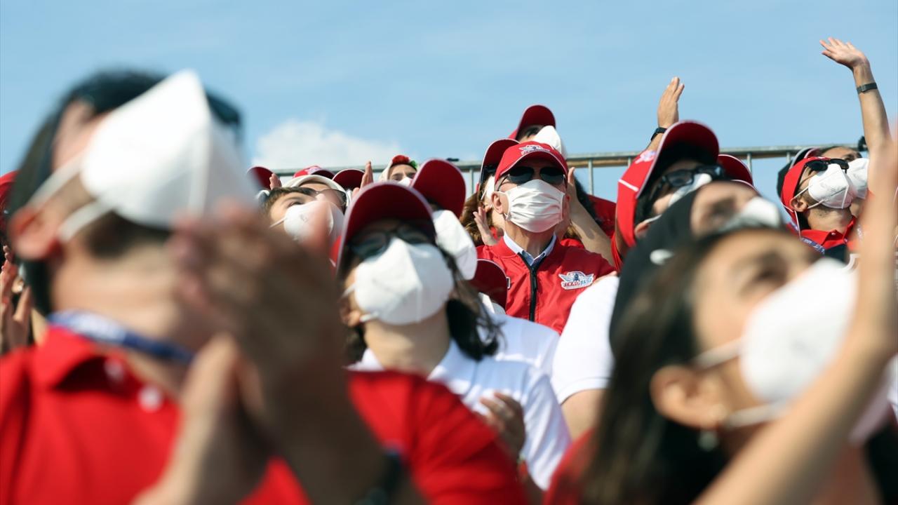 Erdoğan, Hürkuş ve Akıncı`nın da yer aldığı "Milli Kanatlar Gösterisi"ni izlemek üzere tribüne geçerken vatandaşları da selamladı.