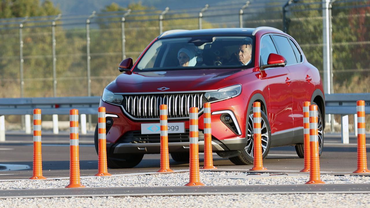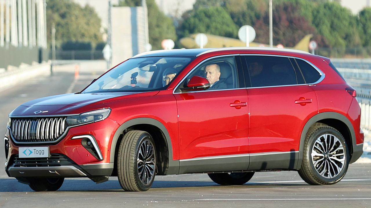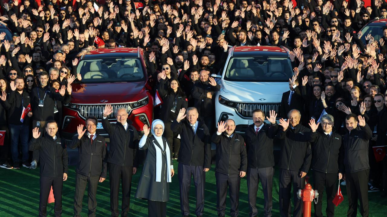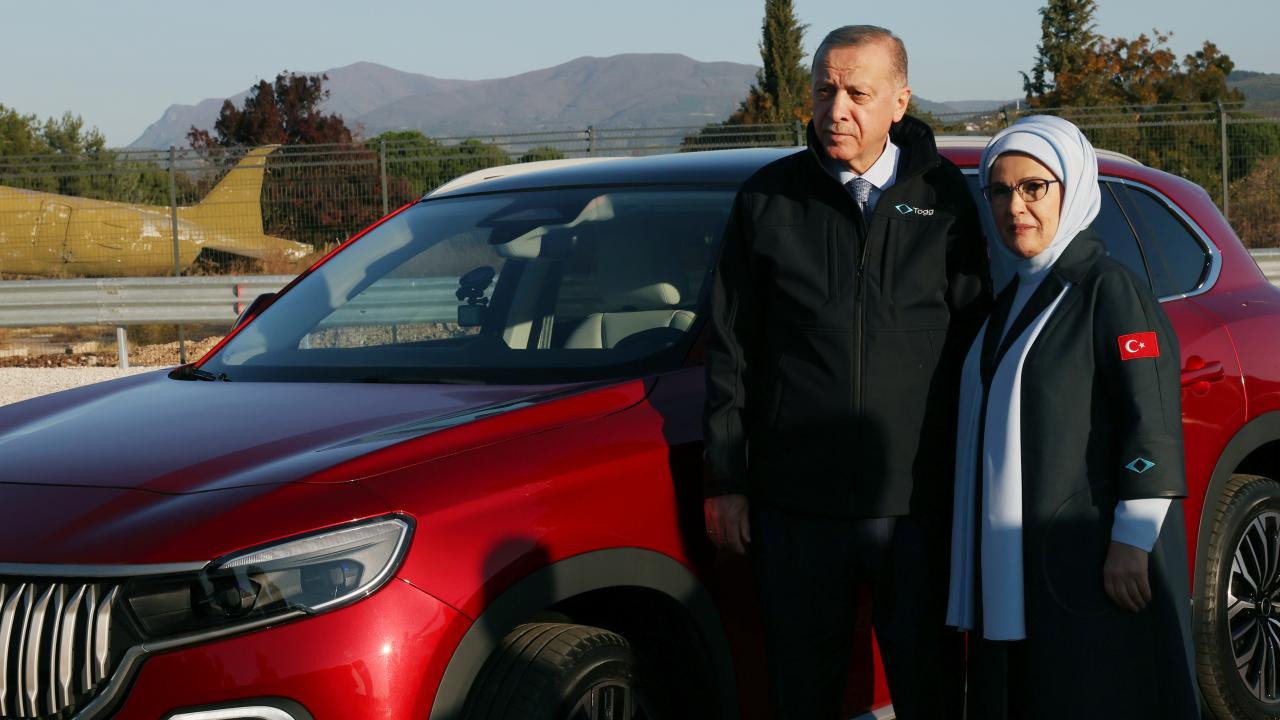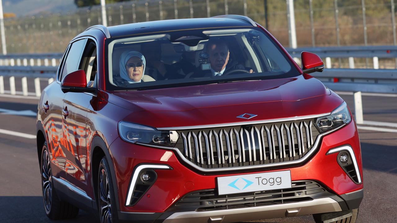 Togg logolu montlar giyen Cumhurbaşkanı Erdoğan ile eşi Emine Erdoğan, sonrasında Togg aracını test etti.