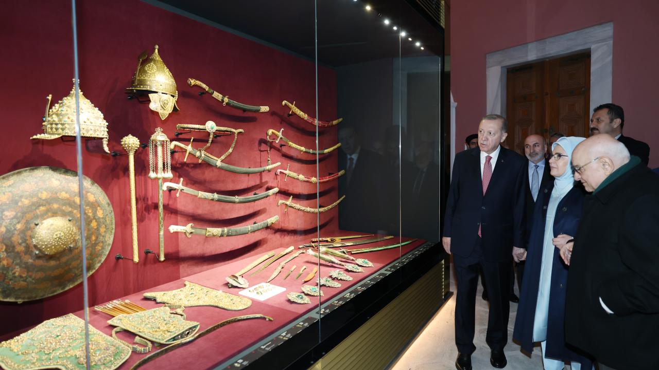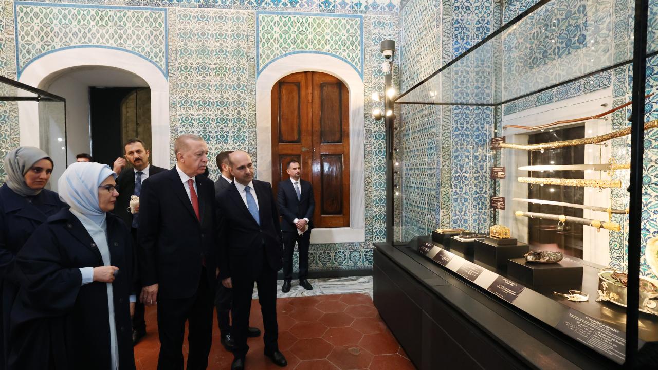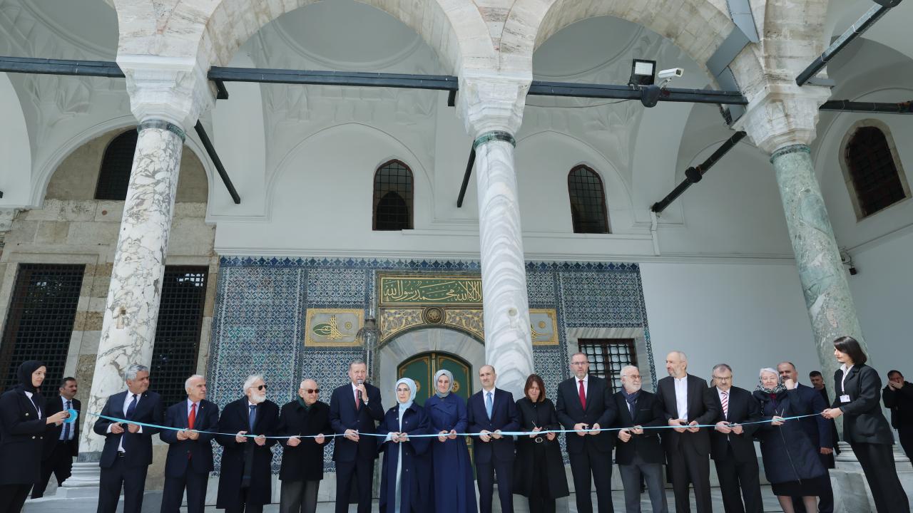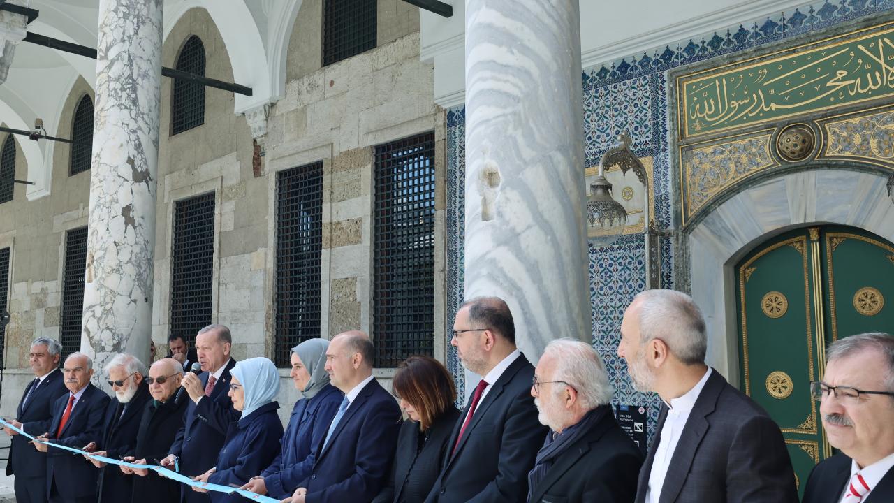 Cumhurbaşkanı Erdoğan, konuşmasının ardından eşi Emine Erdoğan ve Milli Saraylar Daire Başkanı Yasin Yıldız, Milli Saraylar Bilim Kurulu Başkanı Prof. Dr. Sadettin Ökten, kurul üyeleri Prof. Dr. Murat Gül, Prof. Dr. Abdülhamit Tüfekçioğlu, Prof. Dr. Zeynep Gül Ünal ve Prof. Dr. Ahmet Çapoğlu ile birlikte kurdele kesti.
