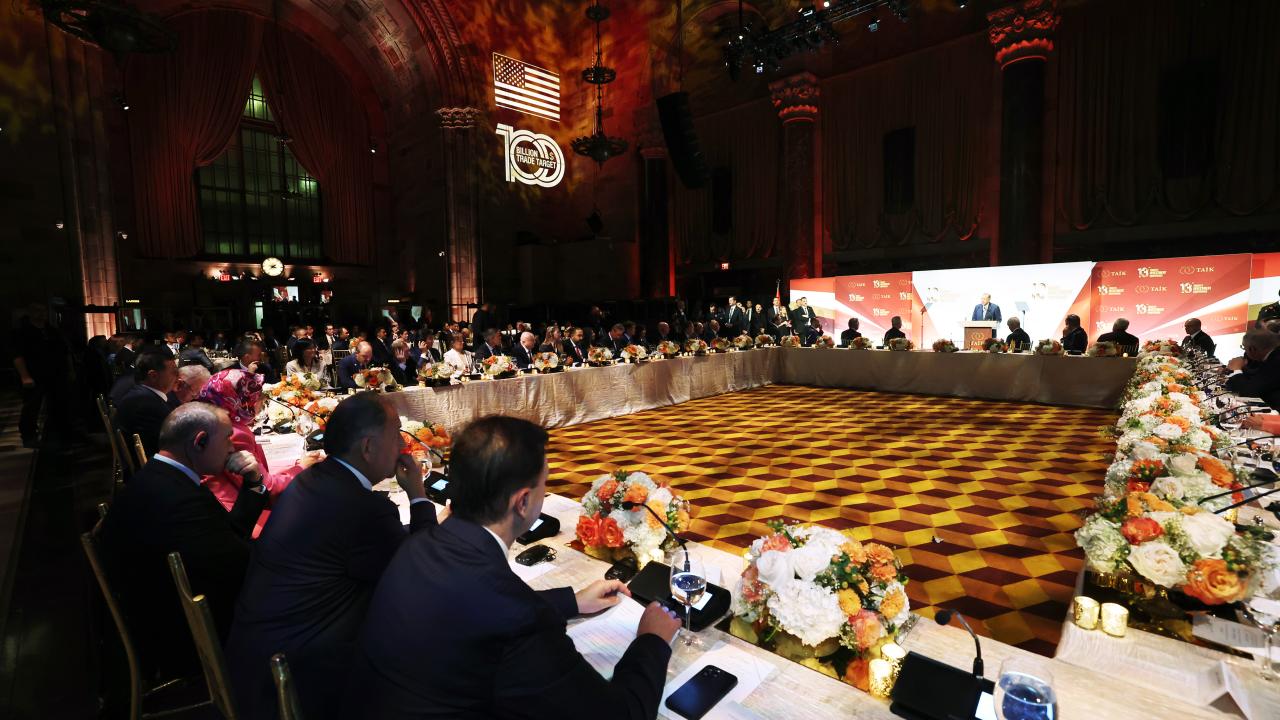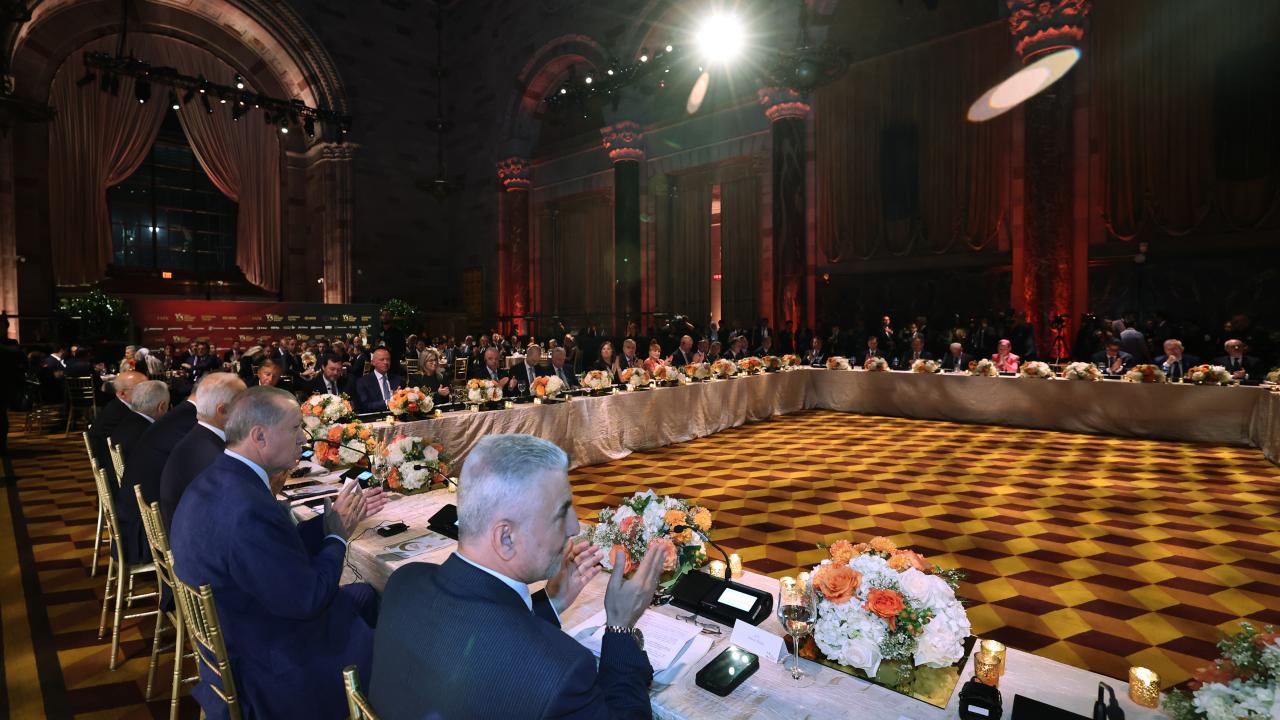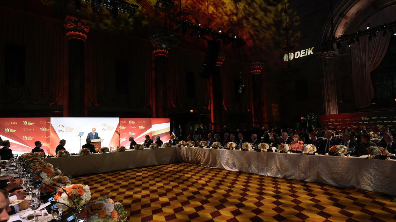 Birleşmiş Milletler (BM) 78. Genel Kurulu'na katılmak üzere New York'ta bulunan Cumhurbaşkanı Recep Tayyip Erdoğan, Türk-Amerikan İş Konseyince (TAİK) düzenlenen yemekte iş dünyası temsilcileriyle bir araya geldi.